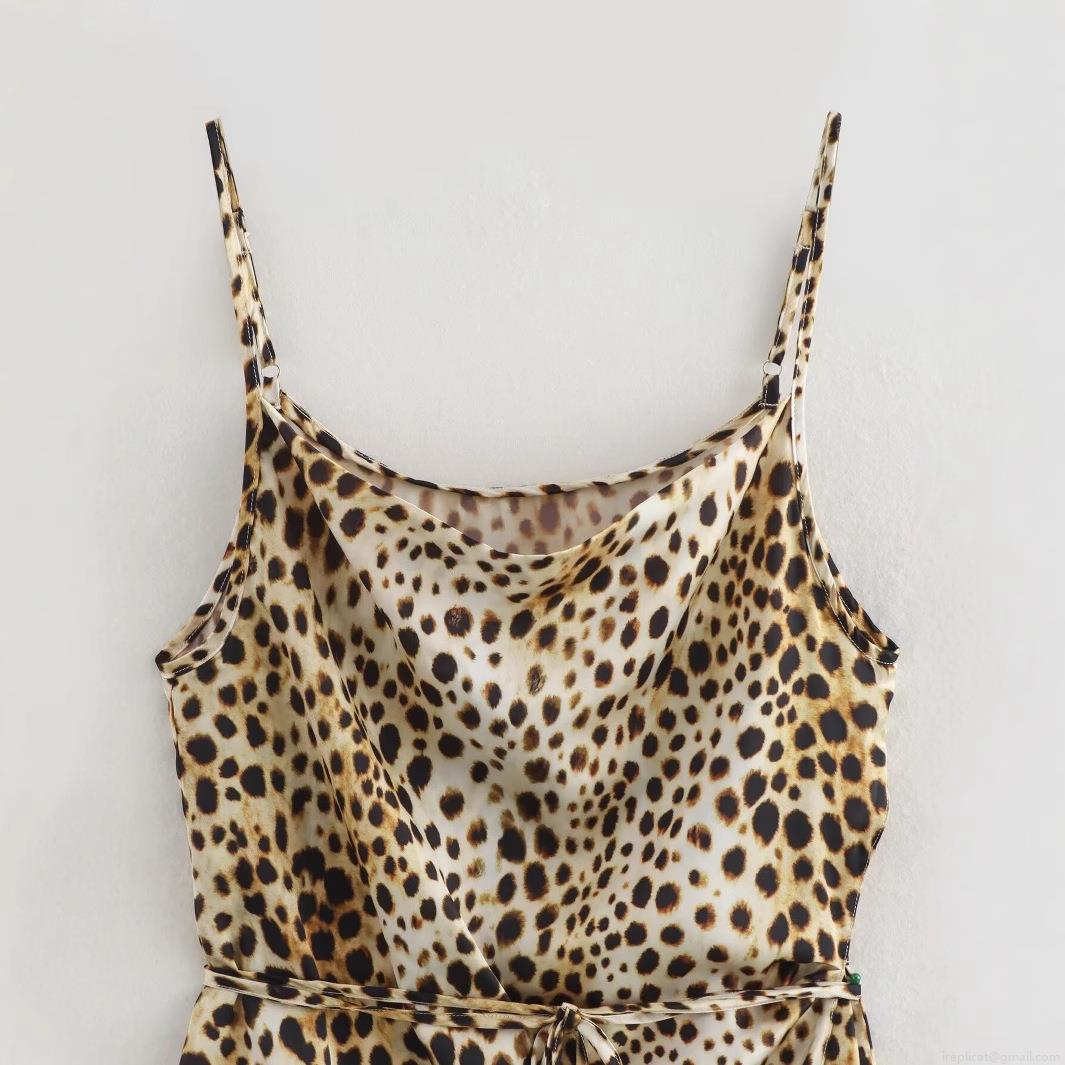 Leopard Print, Animal Print, Lace, Elastic Waistband, Lace-up Design, Satin Finish