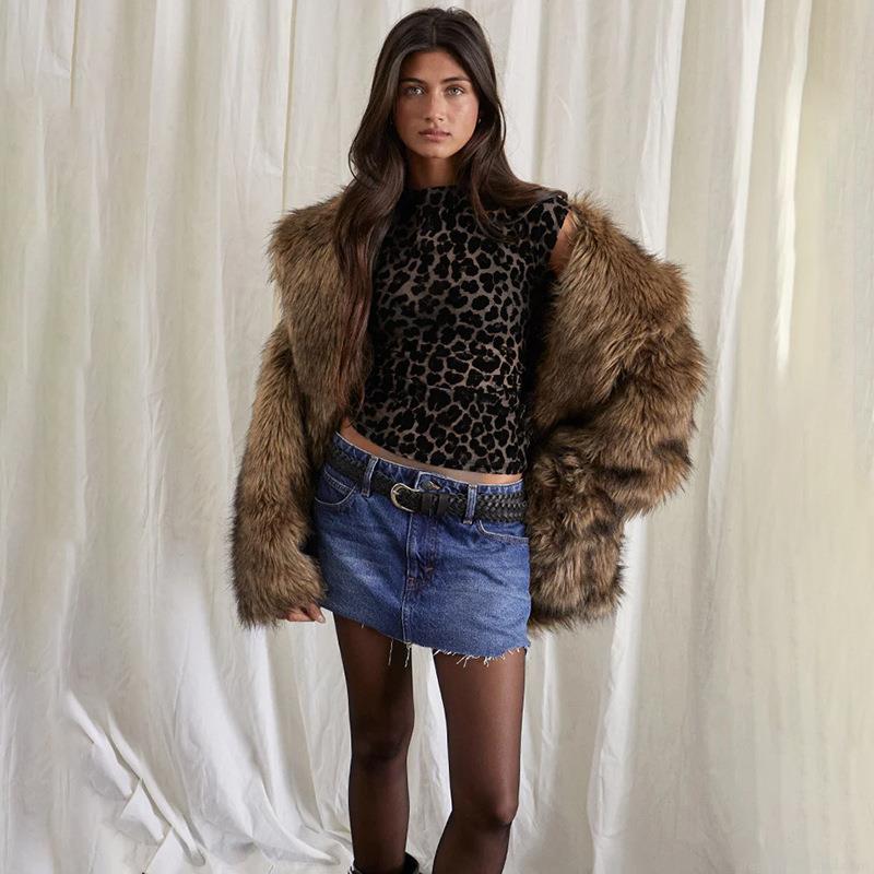 • Women Sexy Leopard Print Mesh T-Shirt Transparent Flocking Short Sleeve Slim Fit Crop Top Y2K Streetwear Summer Polyester Spandex Tee