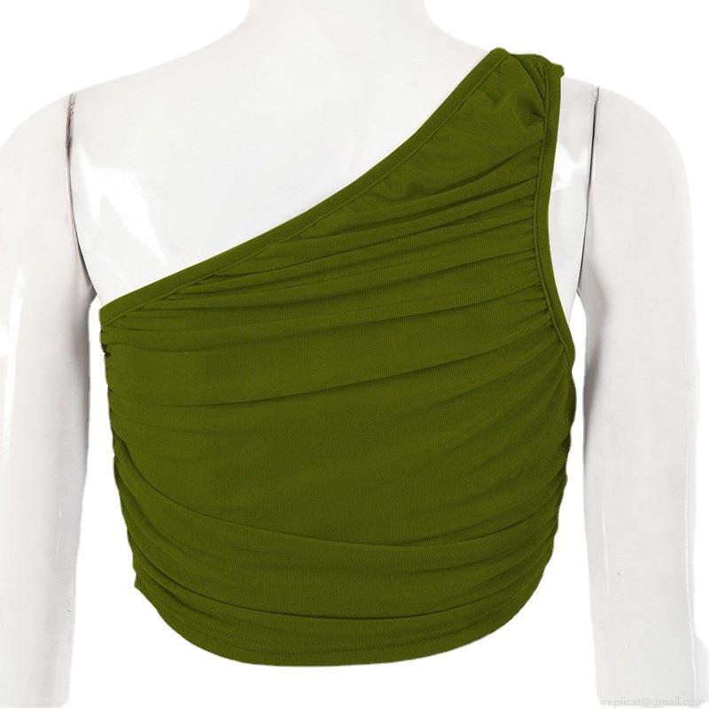 • Women Sexy One Shoulder Ruched Crop Top Stretch Satin Sleeveless Asymmetrical Tight Fitting Streetwear Tank Top For Party Club Solid Color Blouse