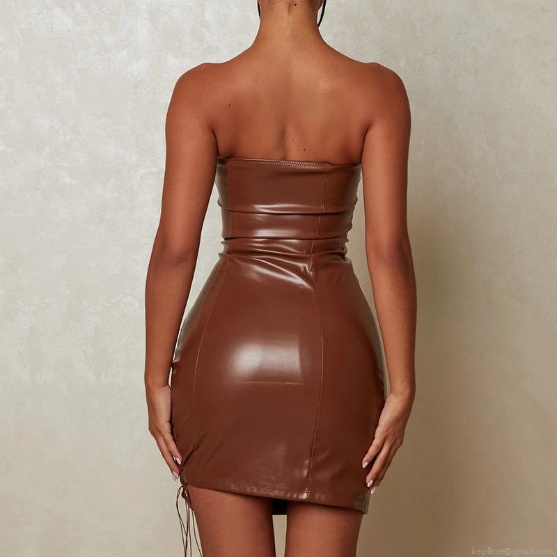 • Women Sexy PU Leather Strapless Mini Dress Lace Up Cut Out Bodycon Clubwear Night Out Party Dress Backless Tight Faux Leather Short Dress