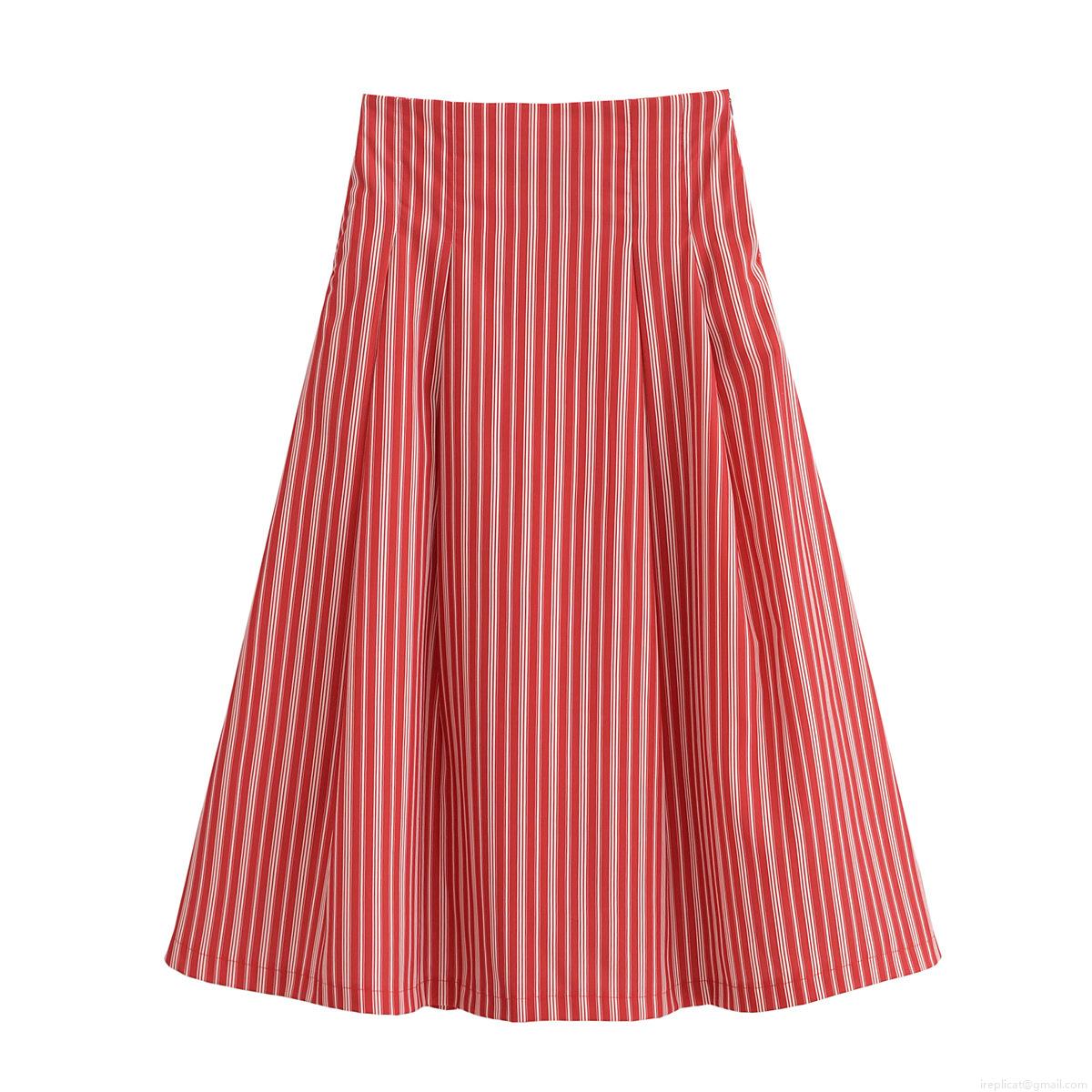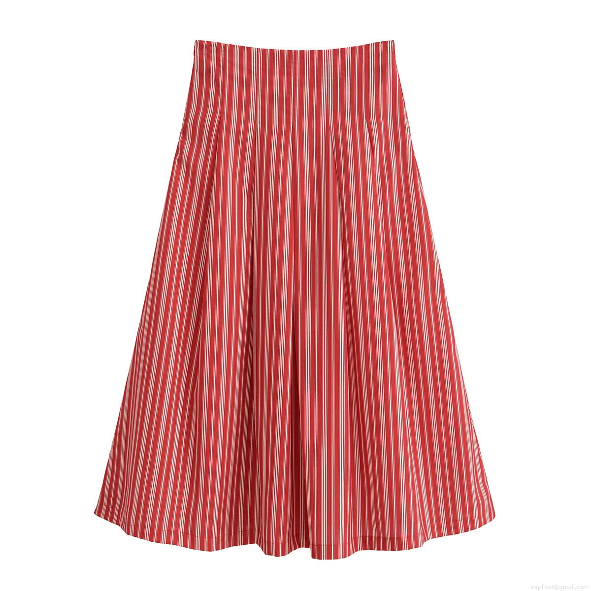 • Women Sexy Red White Striped Two Piece Set Sleeveless V Neck Button Crop Top and High Waist A-Line Midi Skirt Summer Beach Casual Outfits