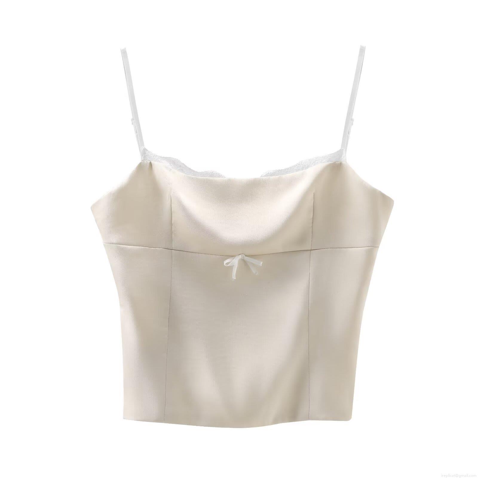 • Women Sexy Satin Camisole Top Lace Trim V-Neck Bow Cropped Tank Streetwear Sleeveless Vest Summer Party Clubwear Solid Color Leopard Print Cami