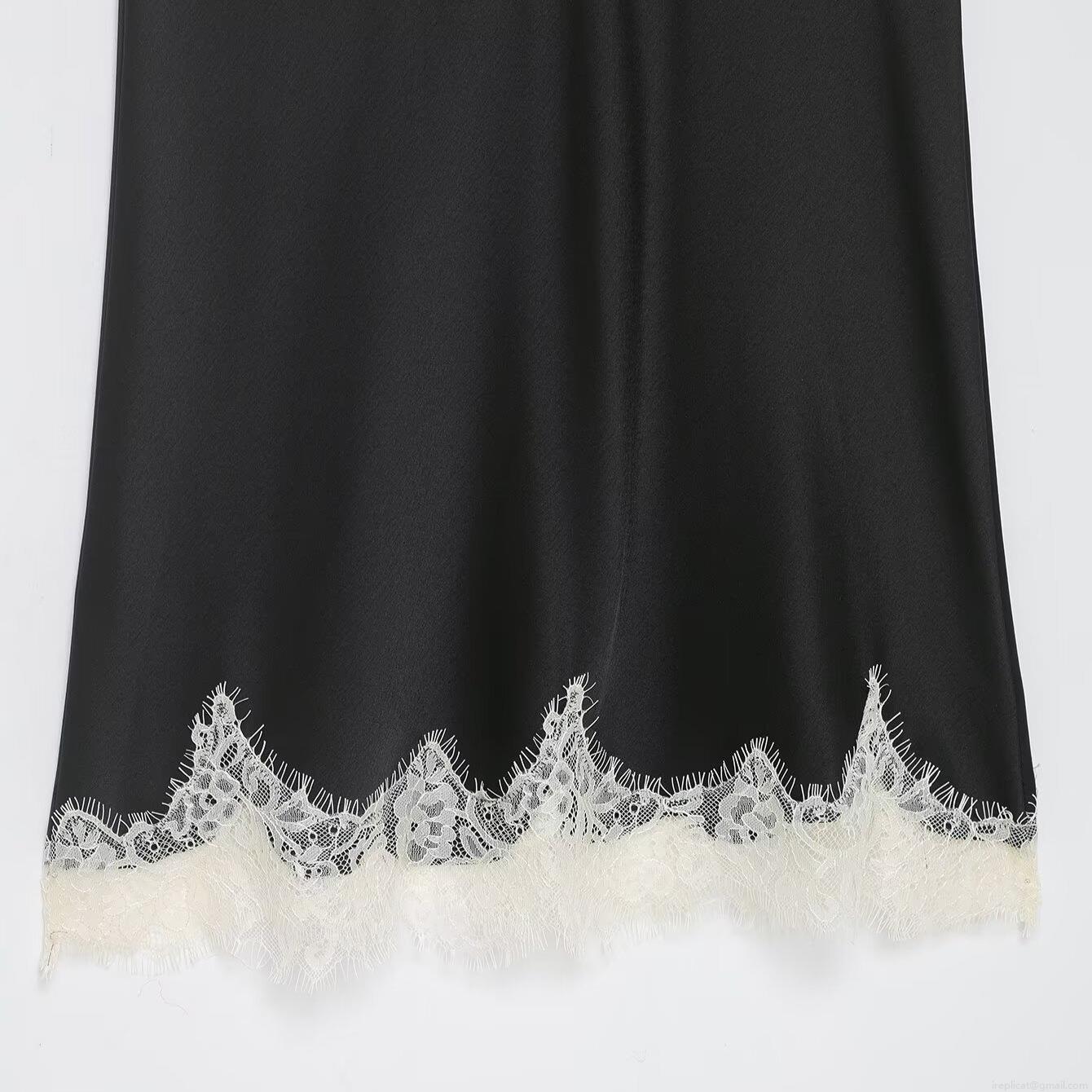 Sexy satin lace patchwork nightdress! V-neck, spaghetti strap, soft silk-like touch. Elegant and comfortable sleepwear. Minor issue: lace a bit delicate, otherwise great!