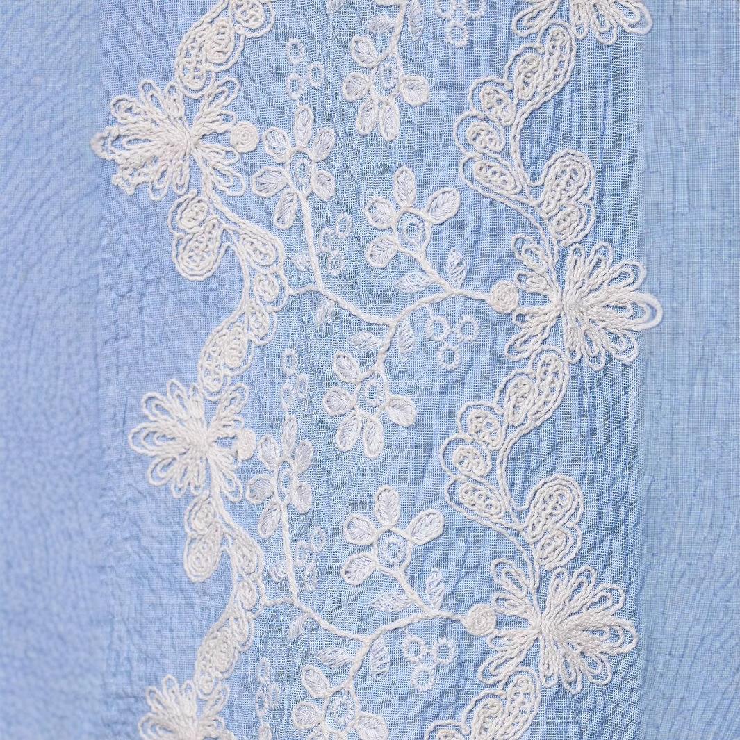 Embroidery, Hollow Wavy Edge, Floral Embroidery, Seersucker Texture