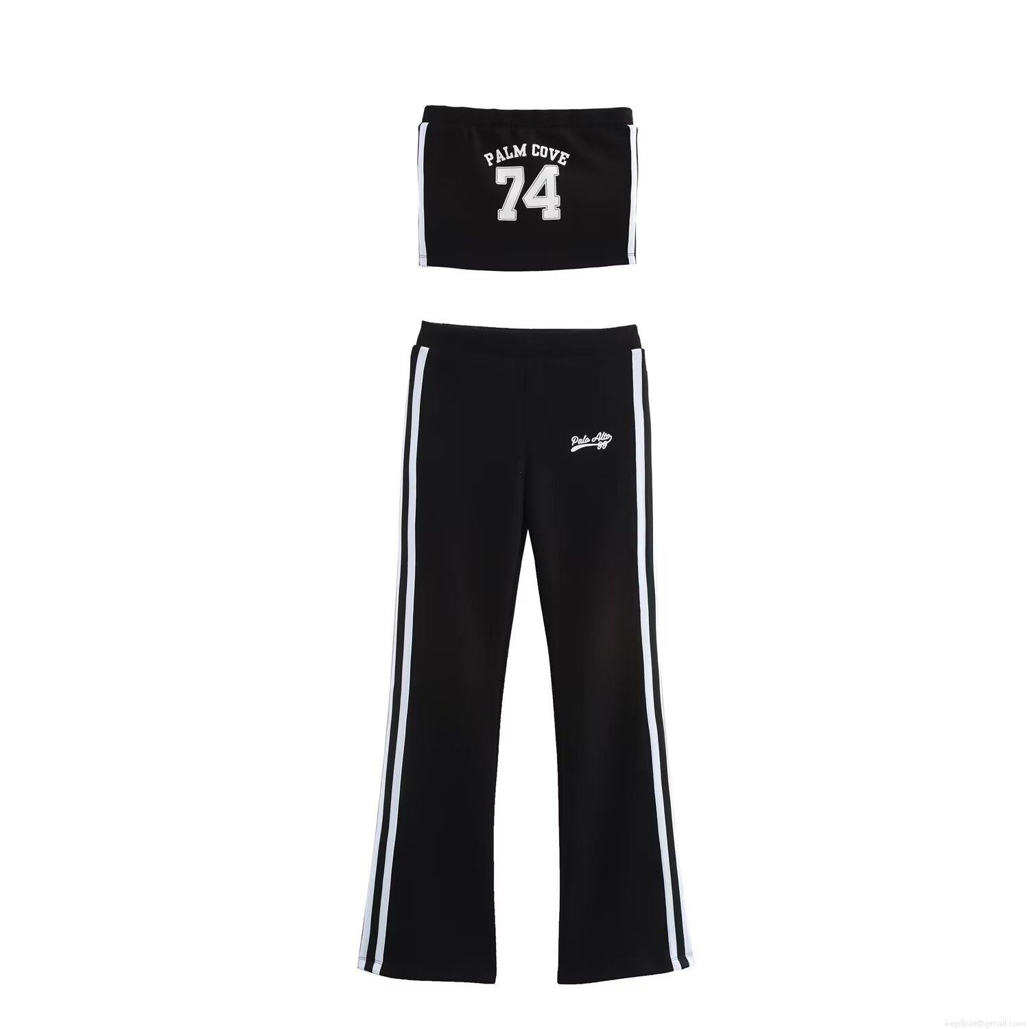 Letters, Color-blocked Stripes, Letter Embroidery, Strapless, Flared Pants, Letter Print, Color-blocked Webbing, Stand-up Collar Zipper