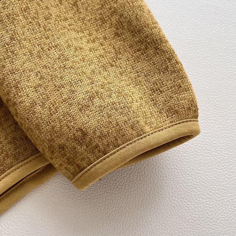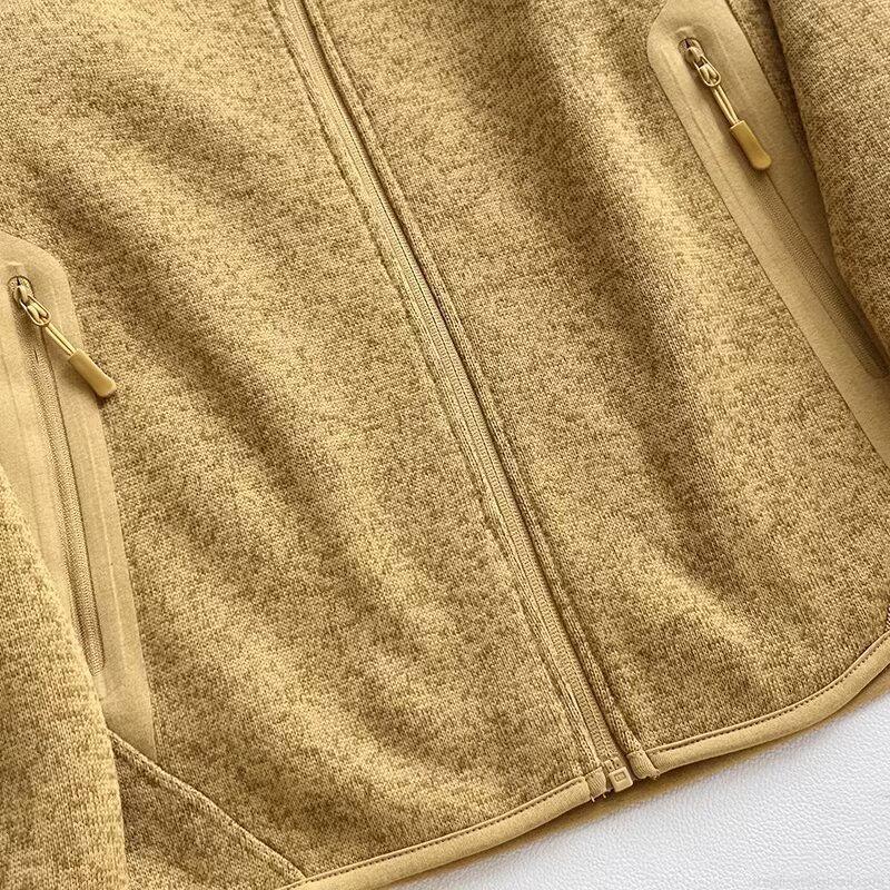 • Women Standing Collar Knitted Fleece Jacket Zip Up Outdoor Warm Cardigan Casual Long Sleeve Solid Color Pocket Outerwear For Autumn Winter