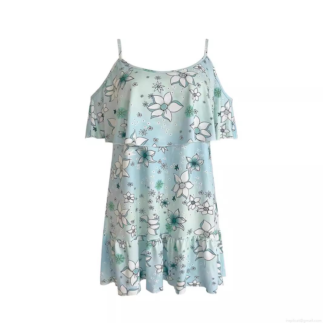 • Women Summer Floral Print Cold Shoulder Ruffle Dress Bohemian Spaghetti Strap Off-Shoulder Sundress Casual Vacation Short Mini Dress