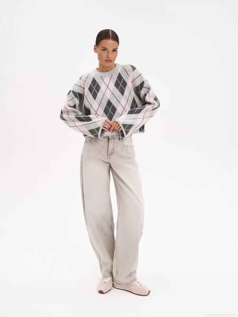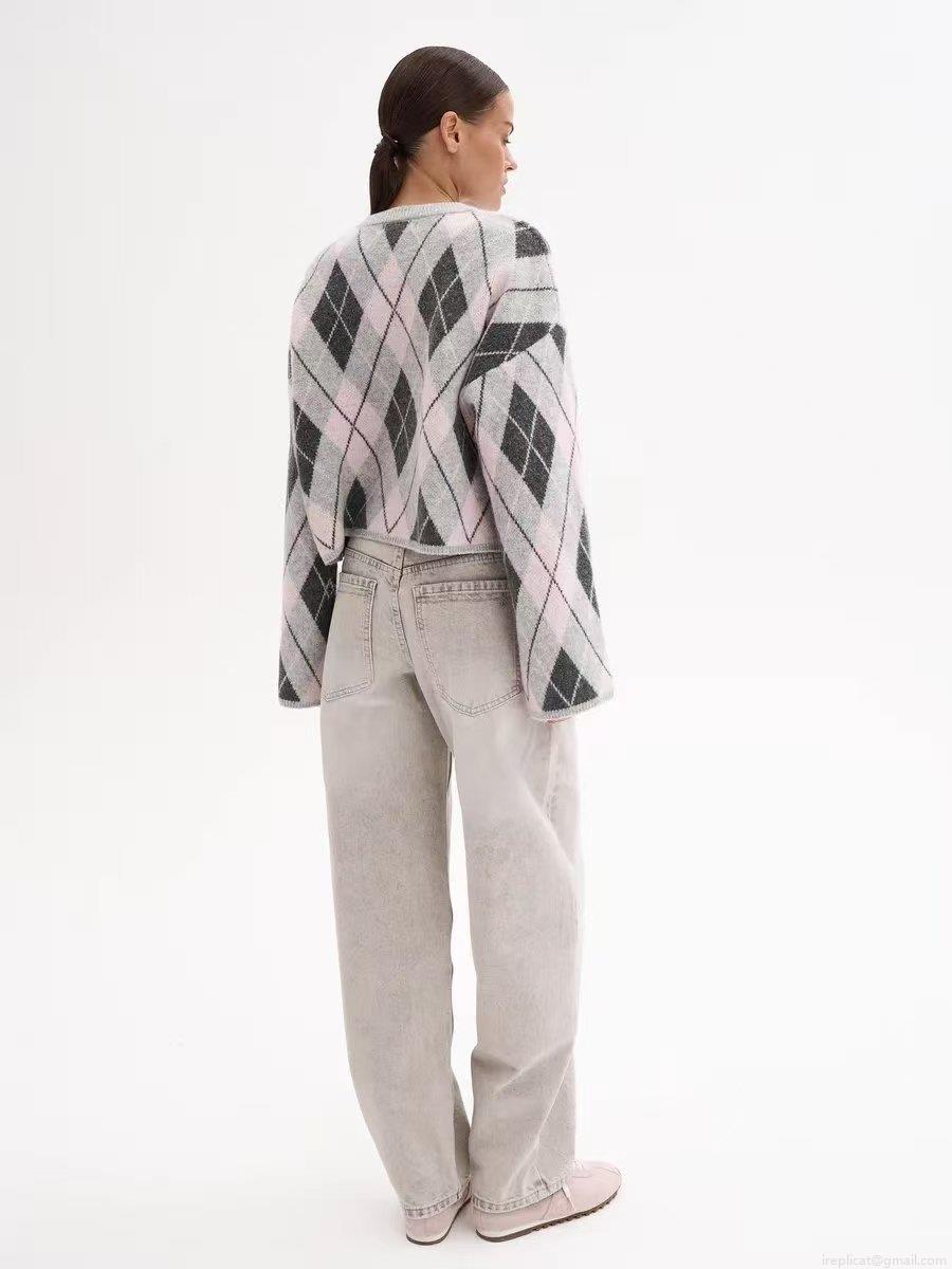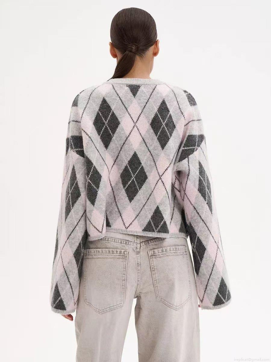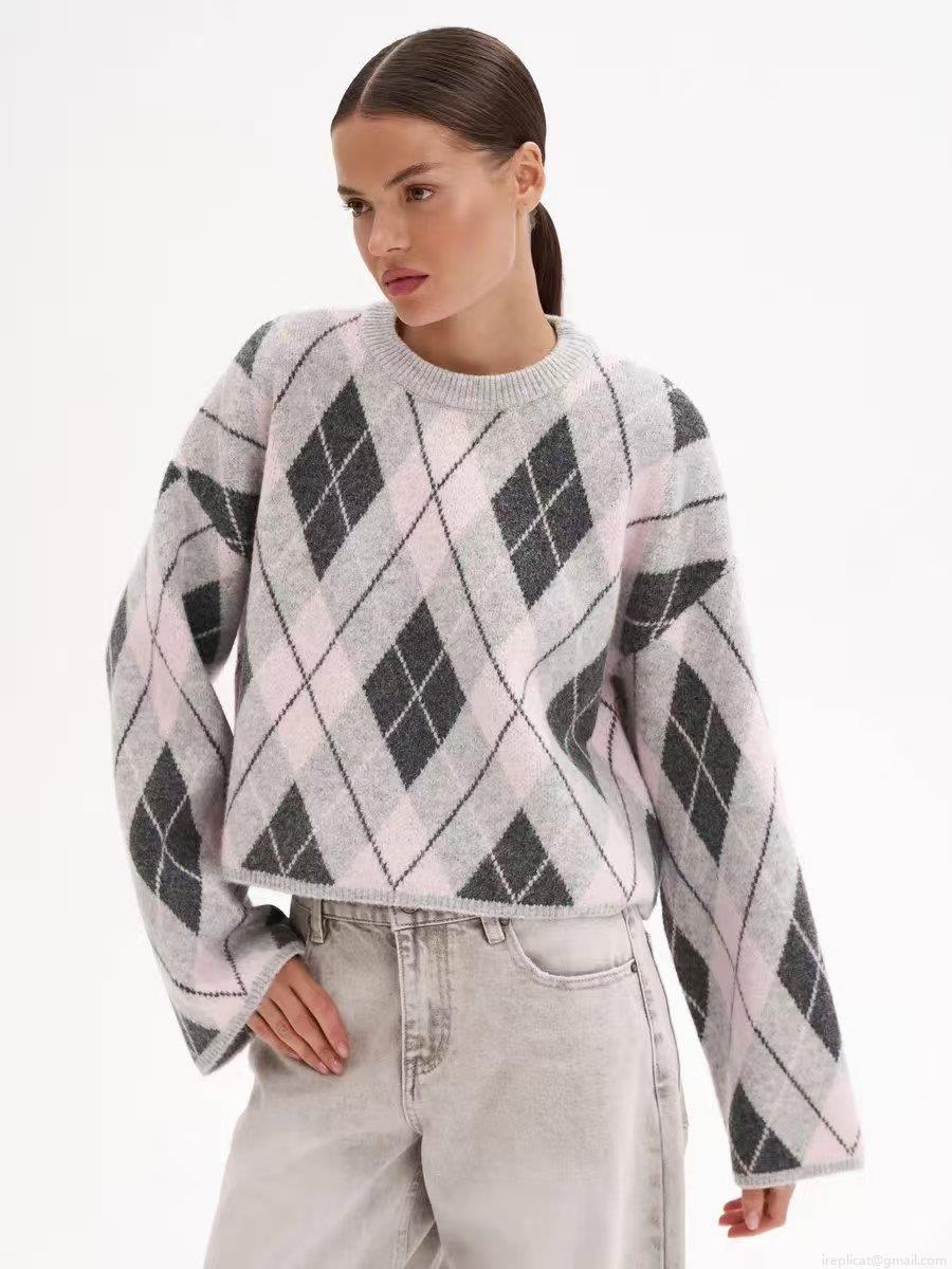 • Women Vintage Argyle Knit Sweater Cotton Blend Round Neck Long Sleeve Color Block Pullover Loose Casual Preppy Style Ladies Knitwear Top