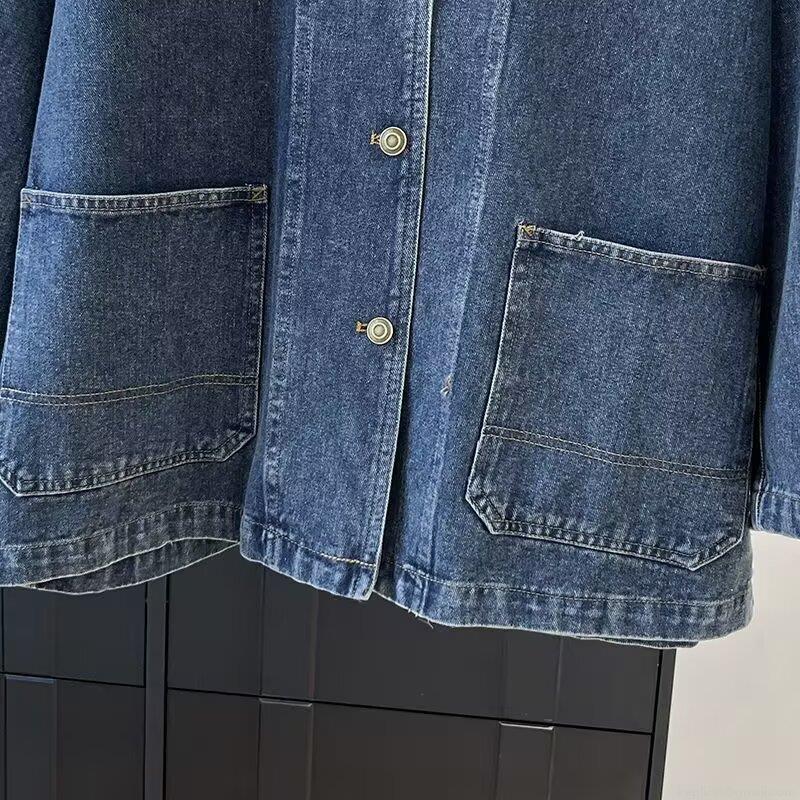 • Women Vintage Corduroy Patchwork Denim Jacket Loose Fit Button Down Oversized Cotton Denim Coat With Large Pockets Casual Fall Outerwear