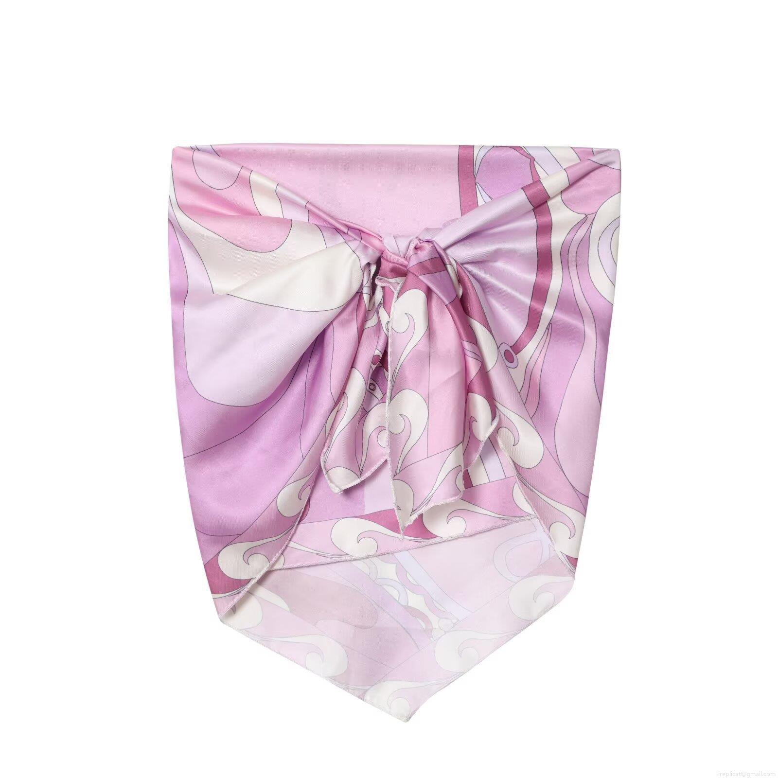 Women's 2 Piece Set Abstract Vortex Print Satin Scarf Bandeau Top and High Waist A-Line Midi Skirt Streetwear Summer Vacation Outfits