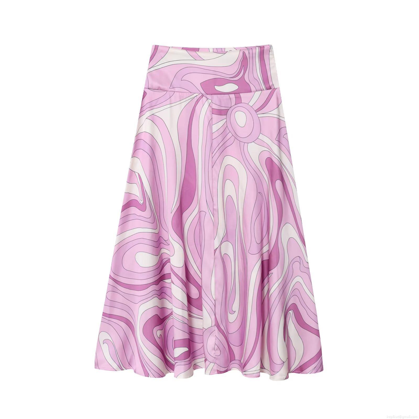 • Women's 2 Piece Set Abstract Vortex Print Satin Scarf Bandeau Top and High Waist A-Line Midi Skirt Streetwear Summer Vacation Outfits