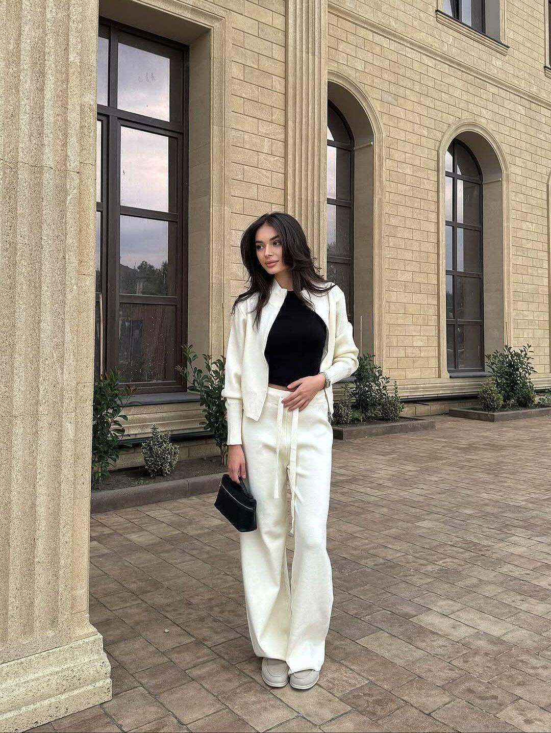 • Women's 2 Piece Tracksuit Set 100% Cotton Solid Color Long Sleeve Zip Up Sweatshirt Jacket And Drawstring Straight Leg Sweatpants Loungewear Jogger Outfits