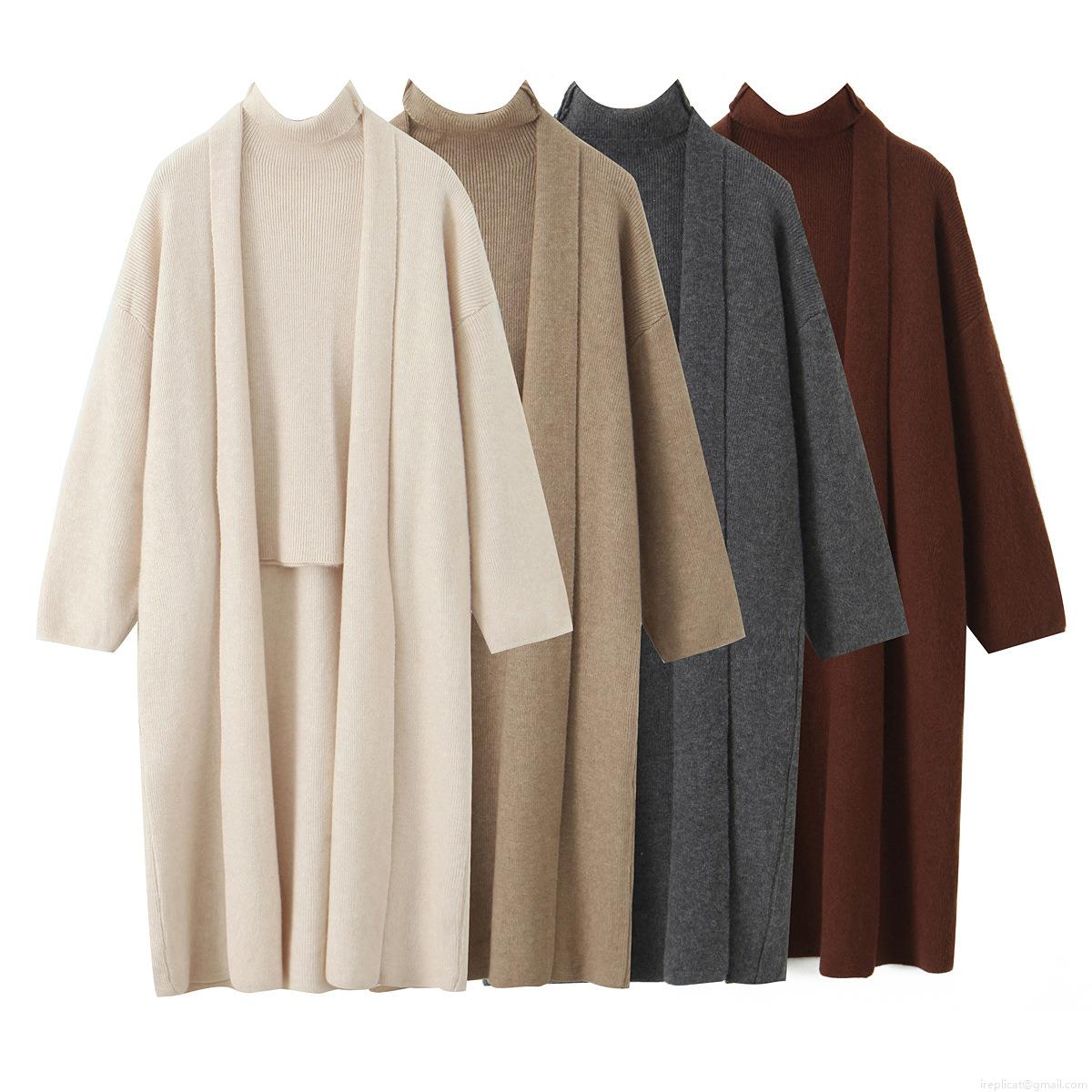 Solid Color, Three-piece Set, Knitted Ribbed, Long Cardigan