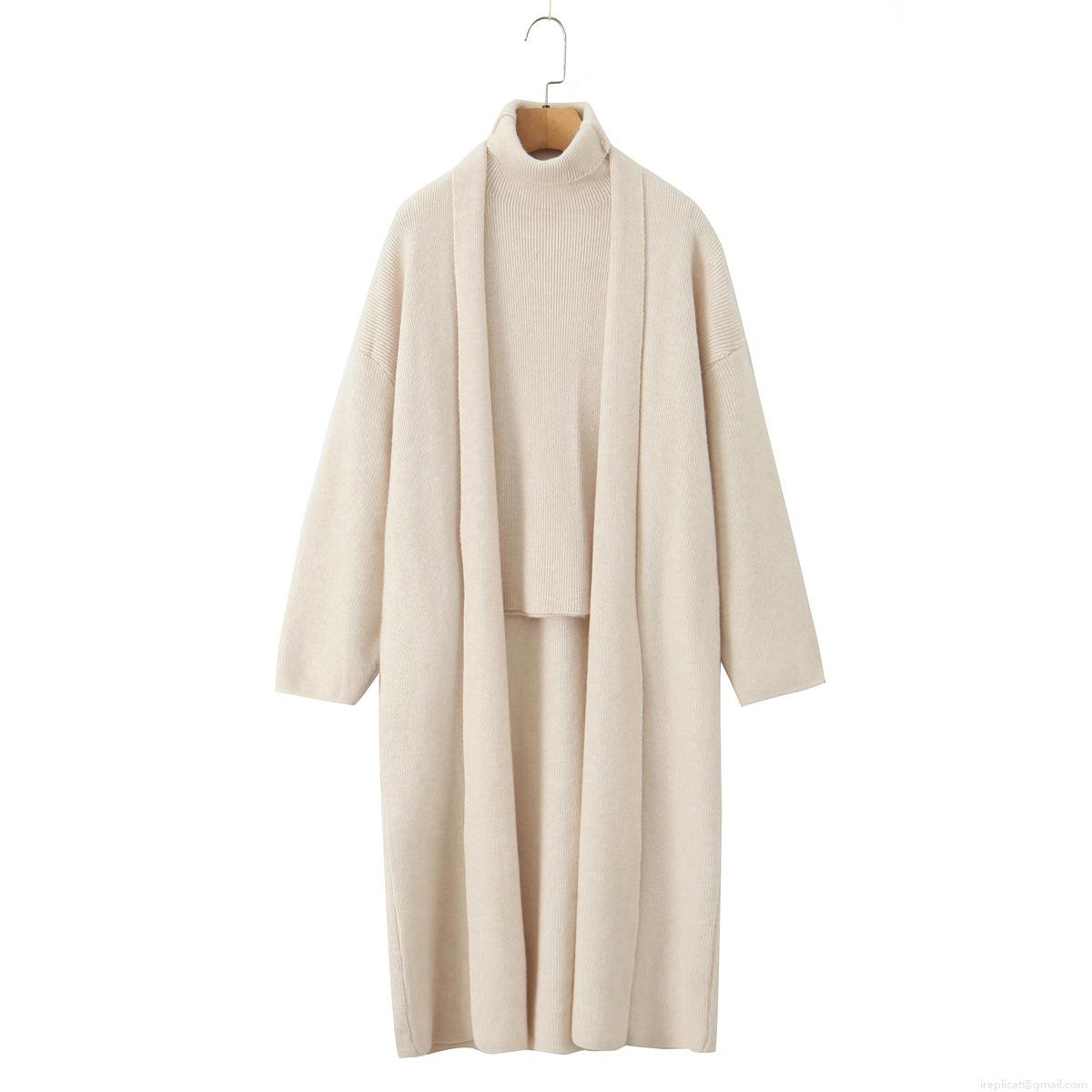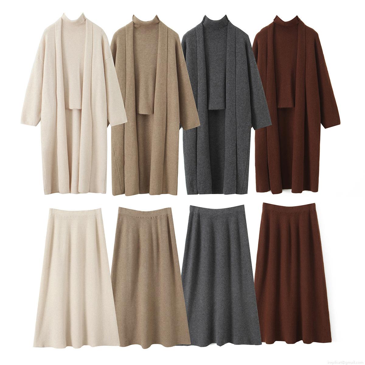 • Women's 3-Piece Knit Set Casual Solid Color Acrylic Blend Long Cardigan Turtleneck Sweater and A-Line Midi Skirt Autumn Winter Warm Outfit Streetwear