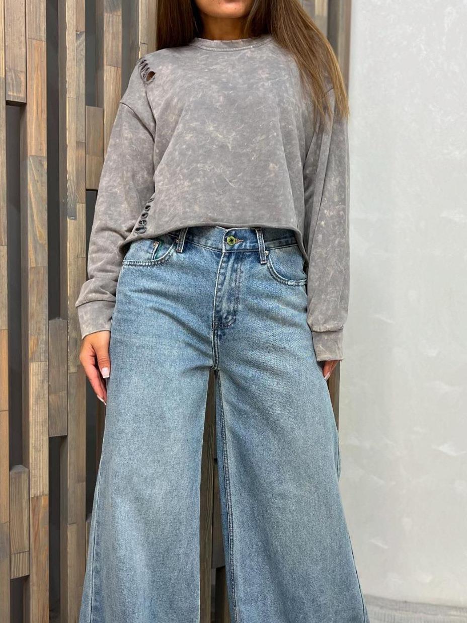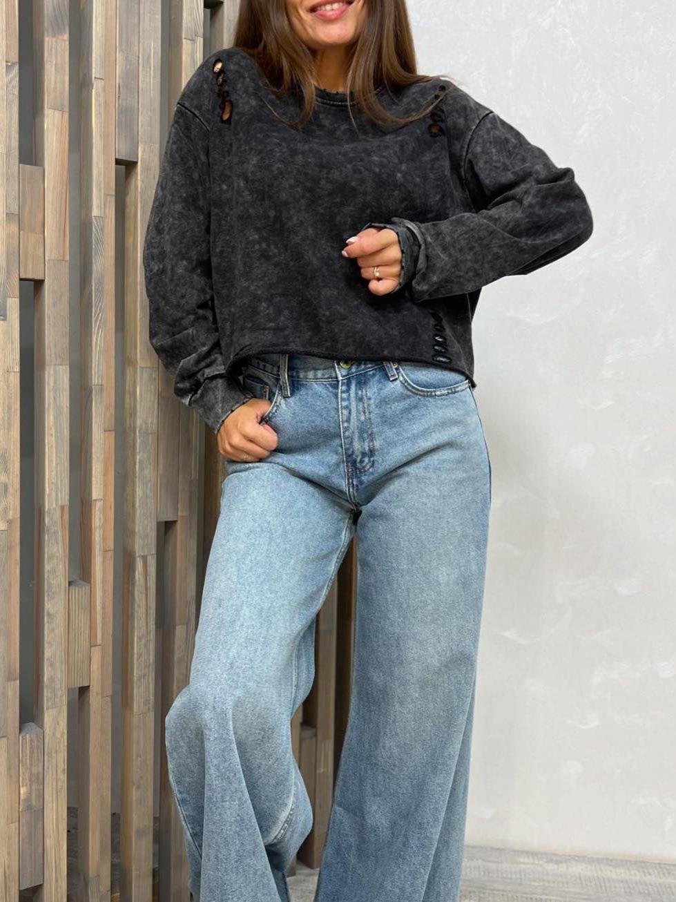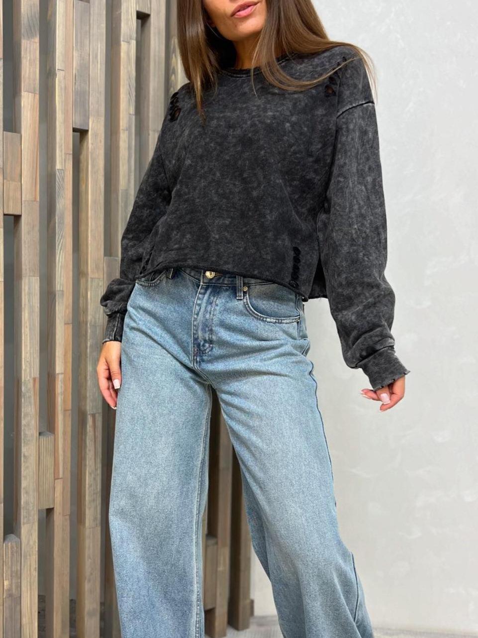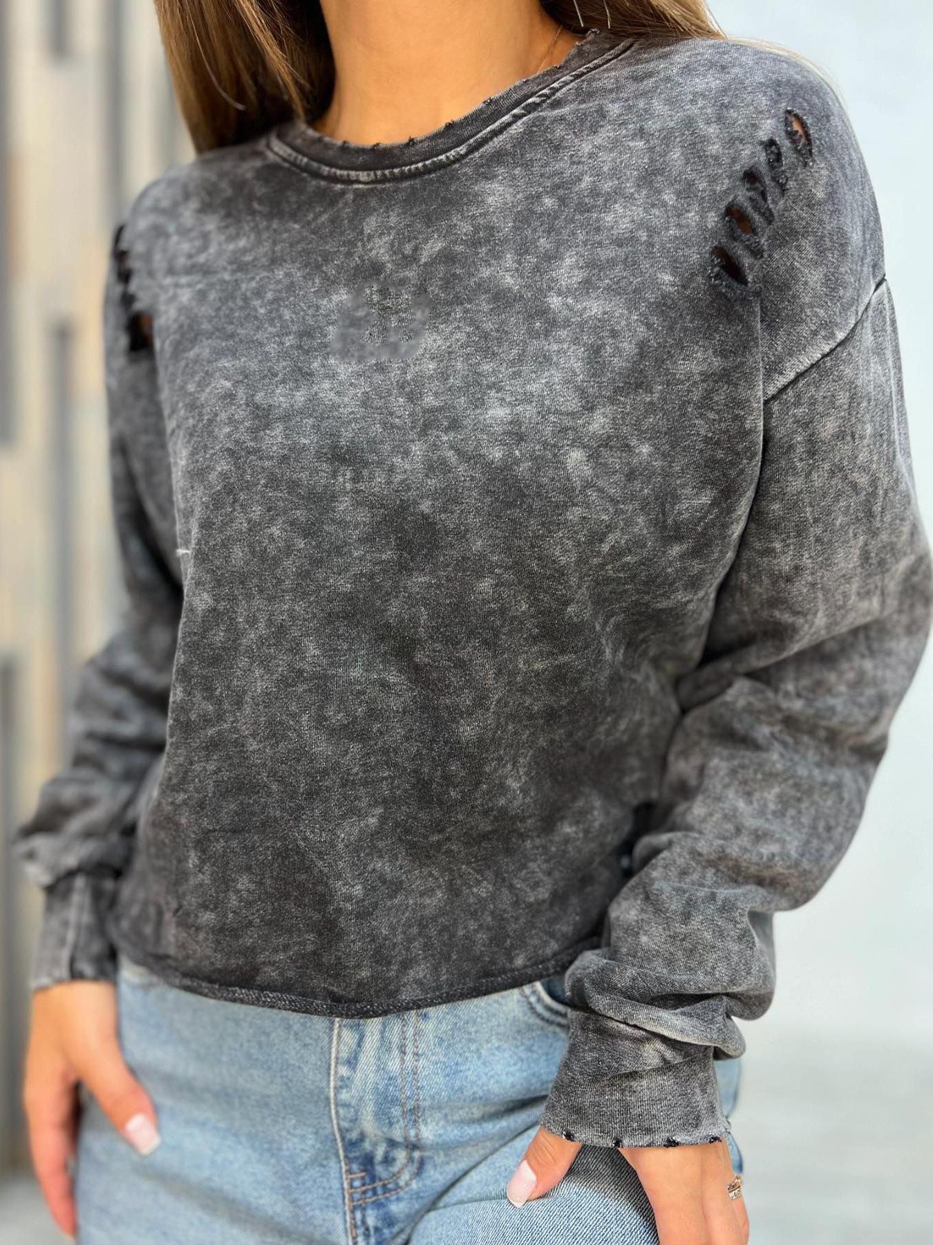 • Women's Acid Wash Distressed Sweatshirt Cotton Blend Long Sleeve Crewneck Pullover With Ripped Details Casual Oversized Streetwear Autumn Top