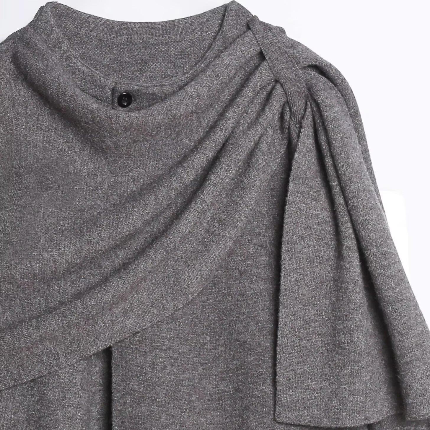 Solid Color, Pleats, Knot, Asymmetrical Design, Cloak Style