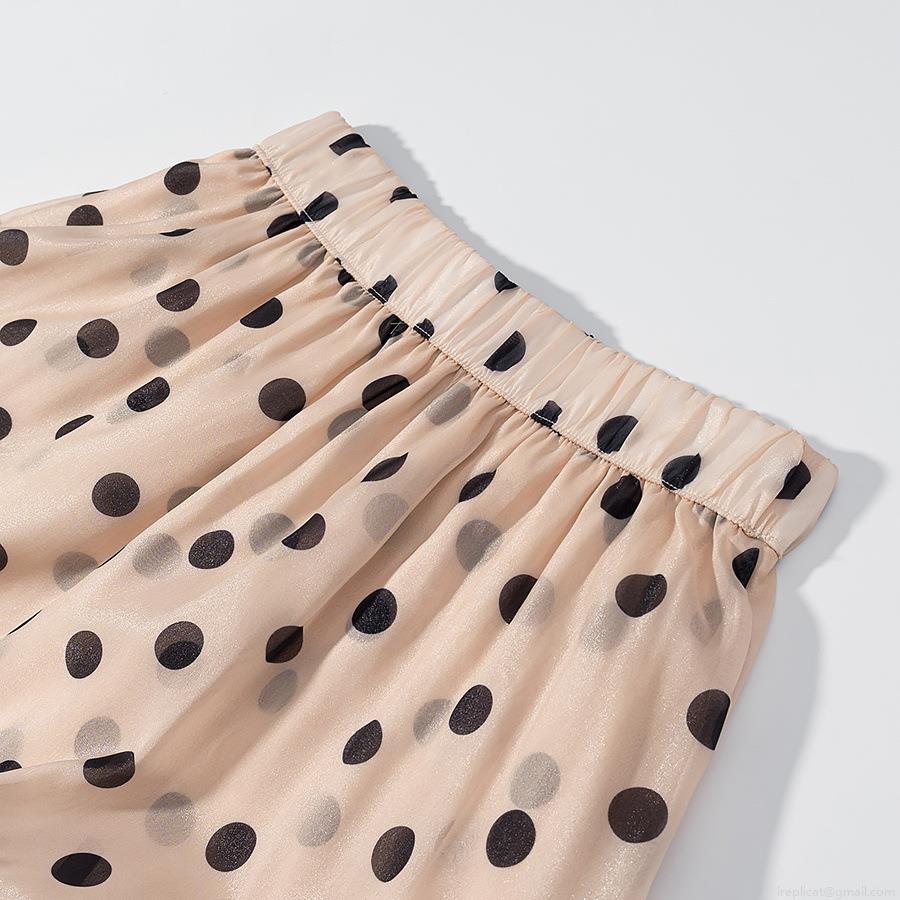 • Women's Autumn Chiffon Ruffle Polka Dot Tiered Midi Skirt High Elastic Waist Layered A-Line Skirt Elegant Streetwear Bohemian Style Beige