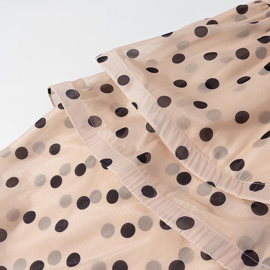 Women's Autumn Chiffon Ruffle Polka Dot Tiered Midi Skirt High Elastic Waist Layered A-Line Skirt Elegant Streetwear Bohemian Style Beige
