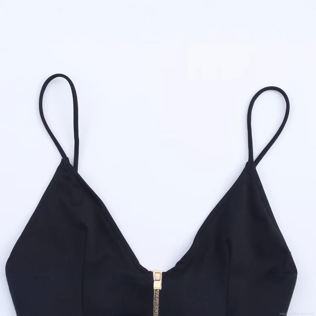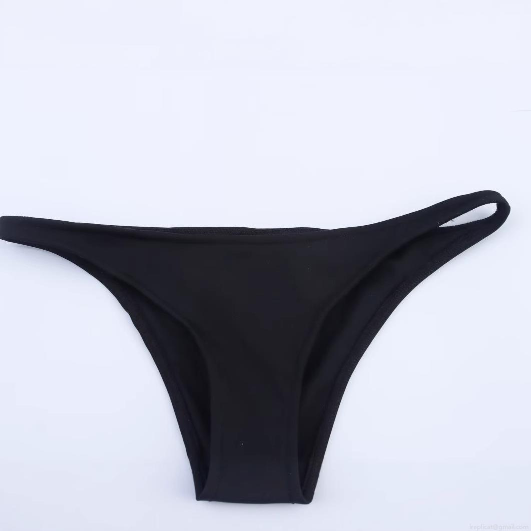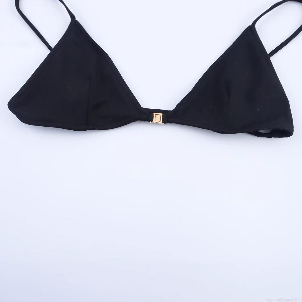 • Women's Sexy Black Triangle Bikini Set Two Piece Swimsuit With Gold Metal Buckle Polyester Spandex Solid Color Beachwear For Vacation Swimming