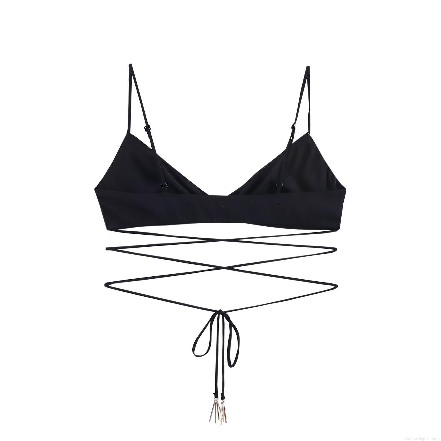 Solid Color, Metal Pendant, Lace-up Design, Thin Shoulder Straps, Cross Around The Waist