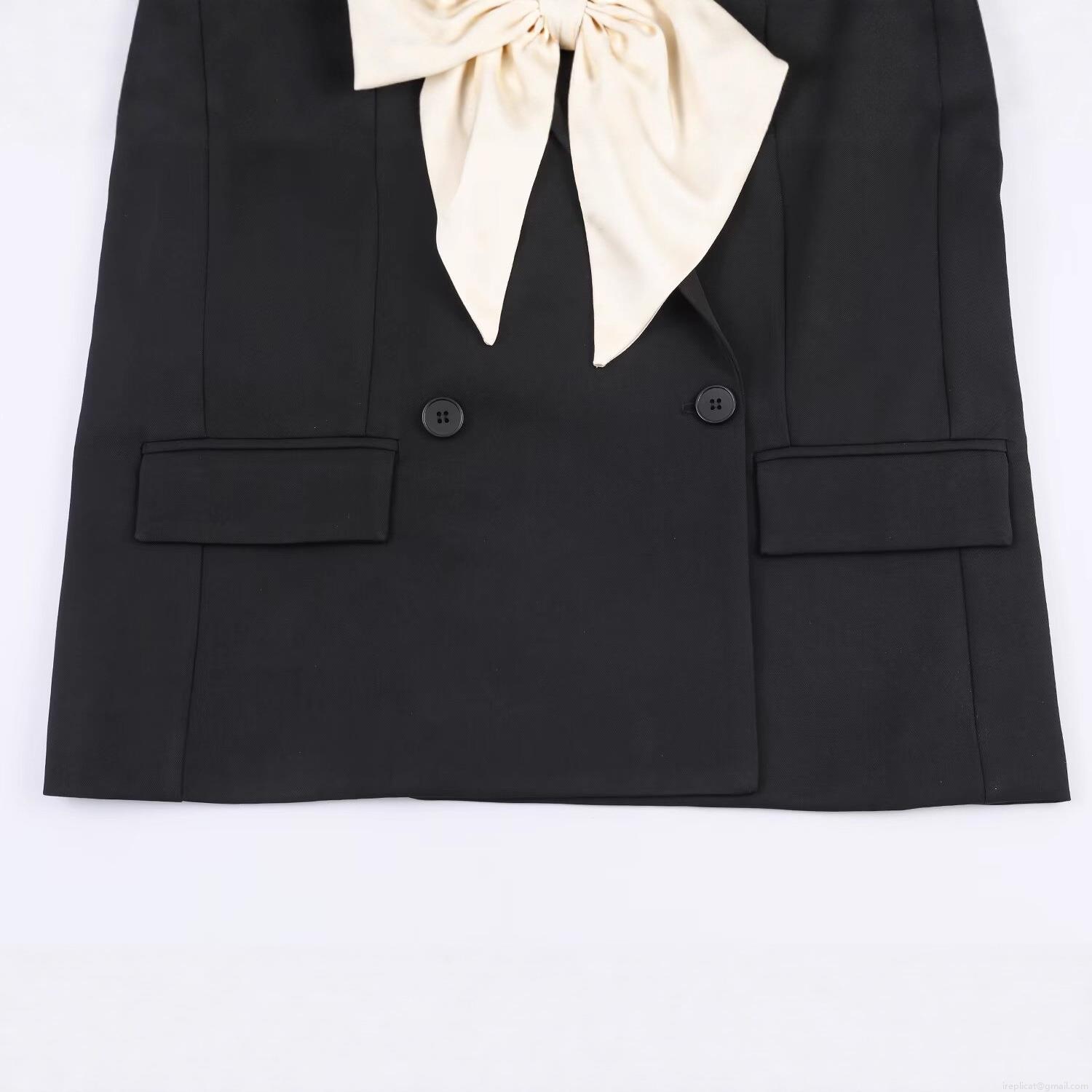 • Elegant Women Black Blazer Suit Jacket With Large Creamy White Satin Bow Double Breasted Long Sleeve Office Party Outwear Fashion Hepburn Style Contrast Color Coat