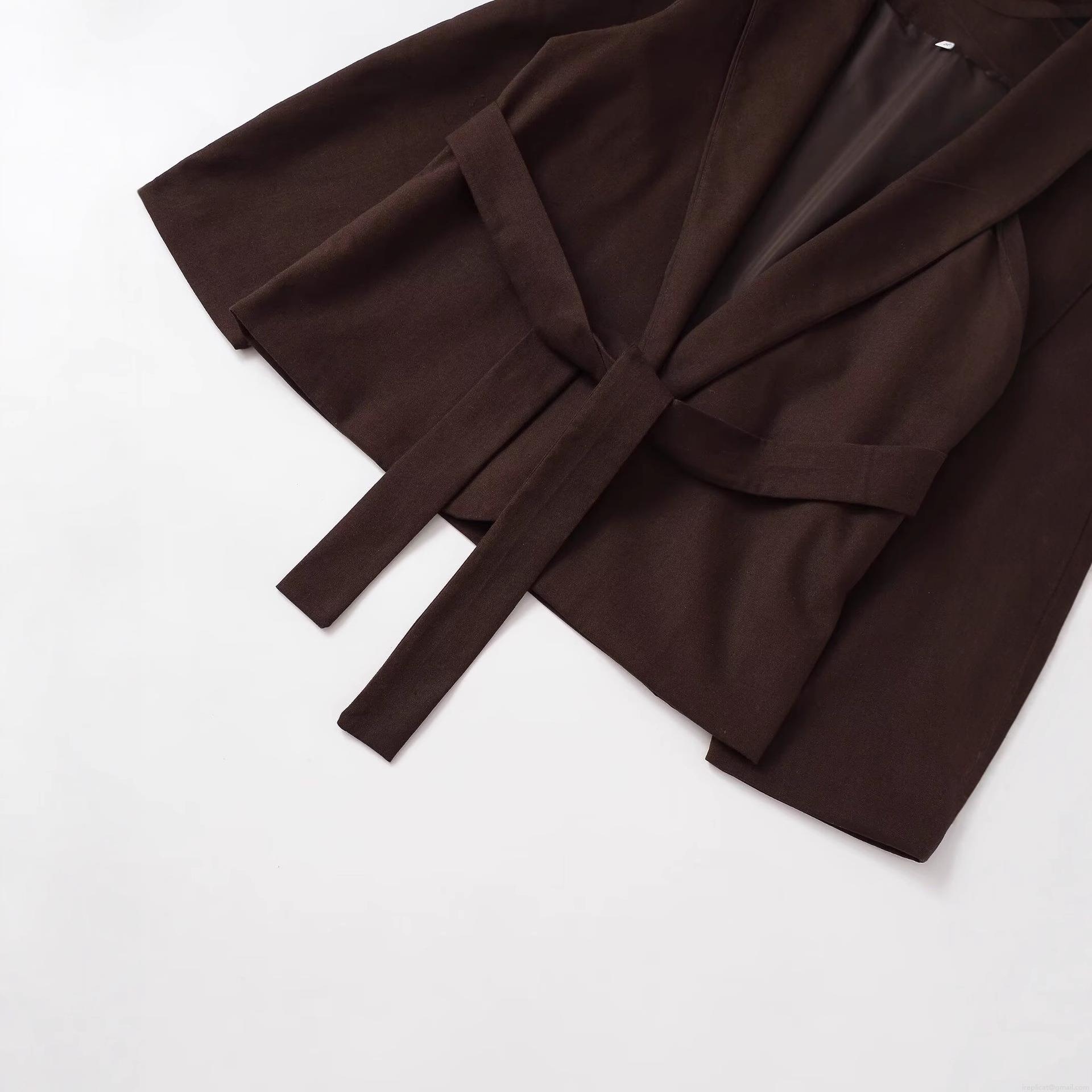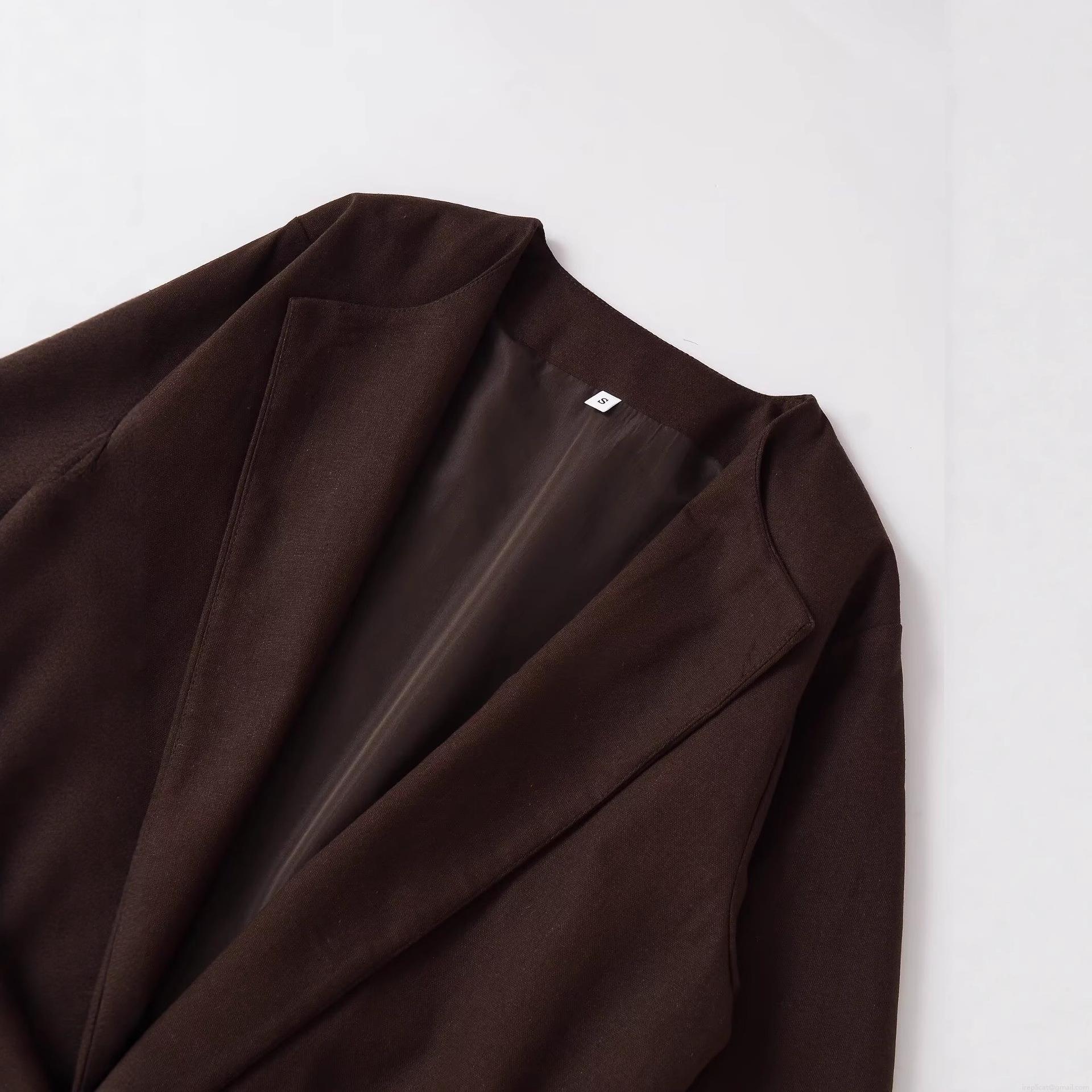 • Elegant Women's Coffee Brown Blazer Jacket With Belt Long Sleeve Lapel Collar Polyester Outerwear For Casual Office Party Work Fashion Solid Color Coat