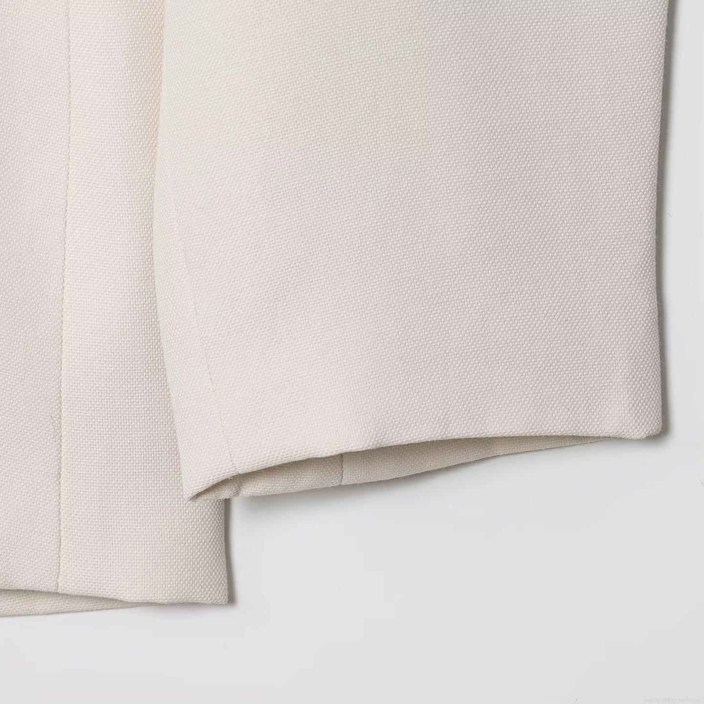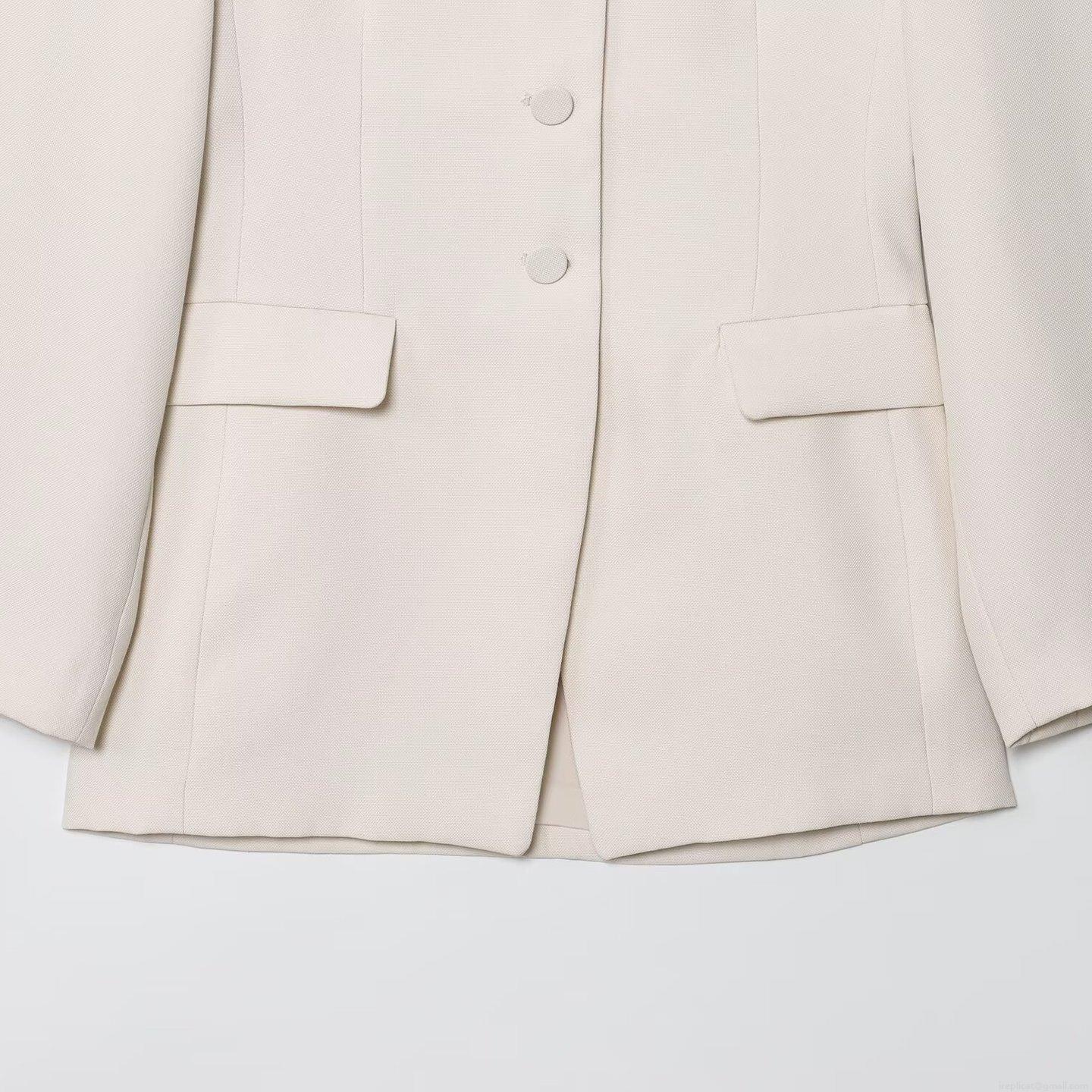 • Elegant Women's Collarless Blazer Jacket Single Breasted Covered Buttons Solid Cream White Commute Office Wear Polyester Spandex Blend Autumn Outerwear With Flap Pockets