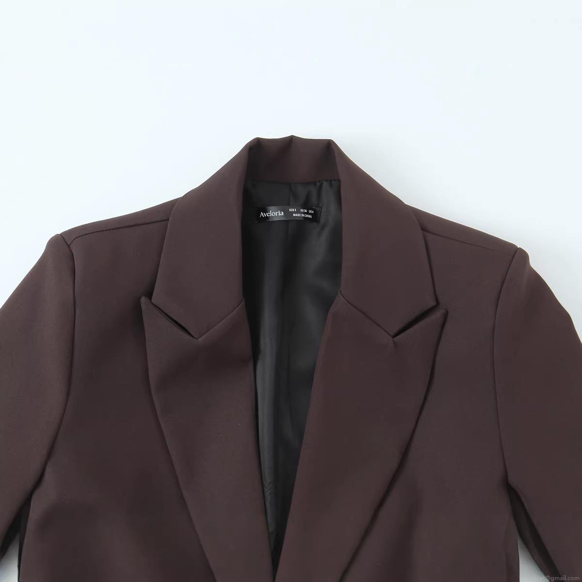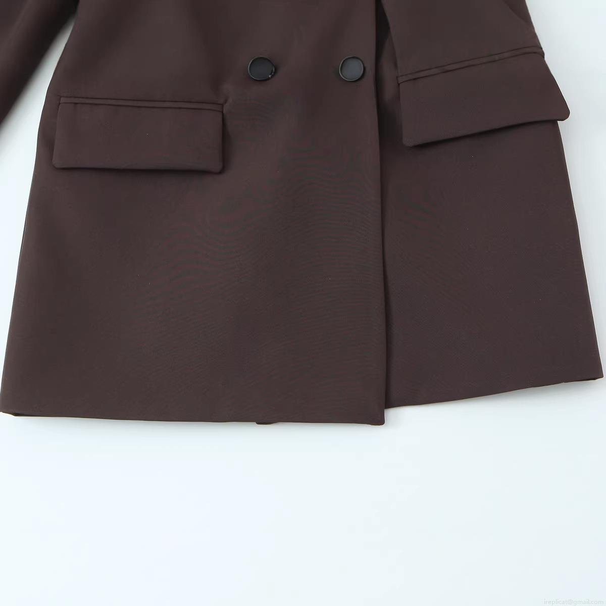 • Fashion Women's Polyester Casual Double Belted Blazer Jacket Peak Lapel Double Breasted Solid Color Mid Length Long Sleeve Office Outerwear Coat