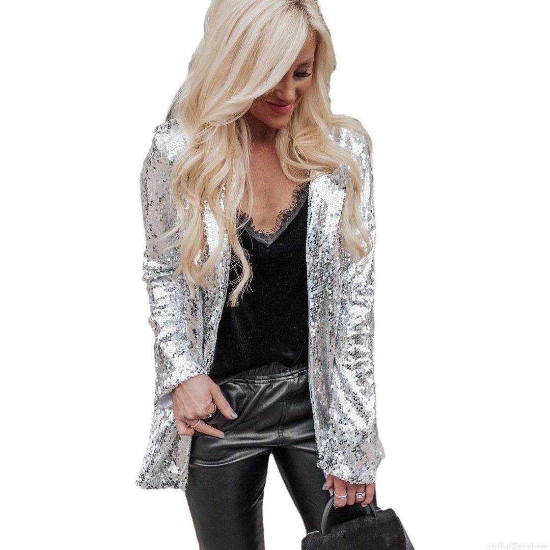 Sparkly Sequin Blazer Jacket For Women Long Sleeve Slim Fit Open Front Suit Coat For Party Club Evening Night Out Special Occasion Fashion Outerwear