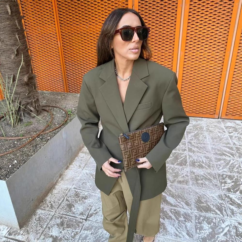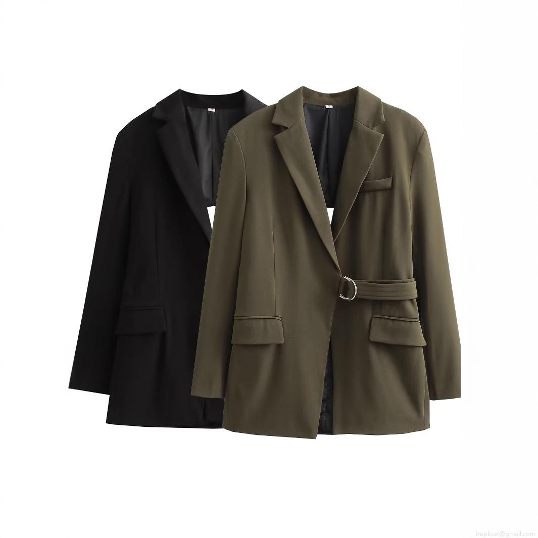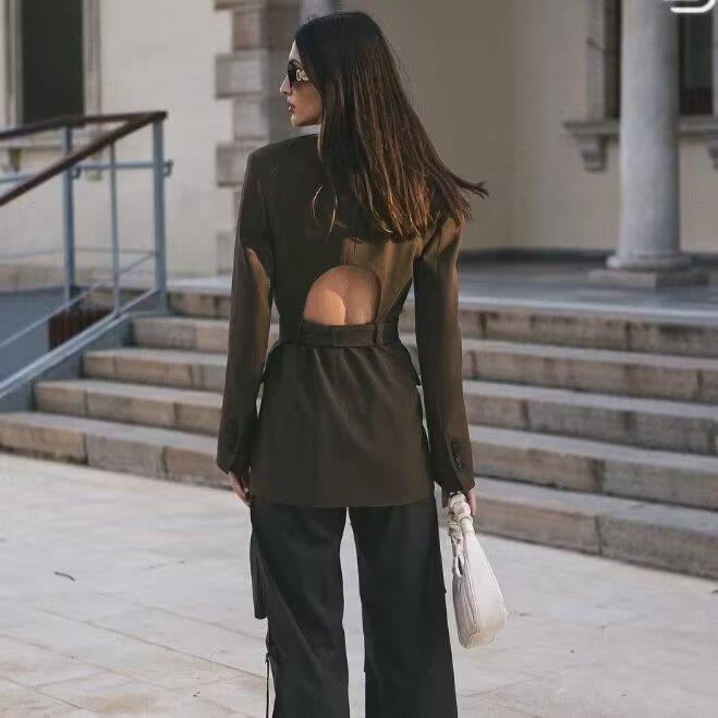 • Women Backless Cutout Blazer Jacket With Belt Metal D-Ring Long Sleeve Solid Color Fashion Office Casual Trendy Streetwear Outerwear For Ladies