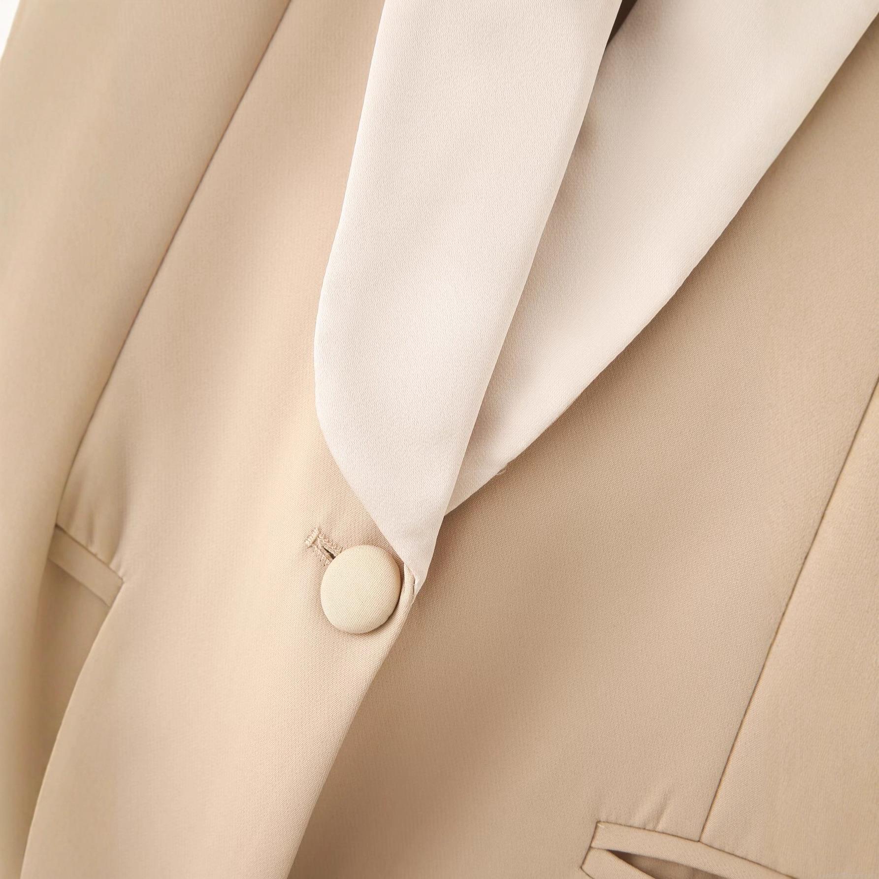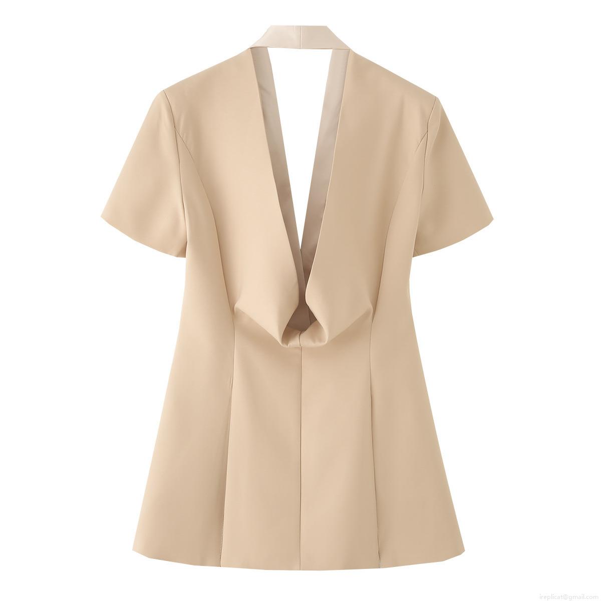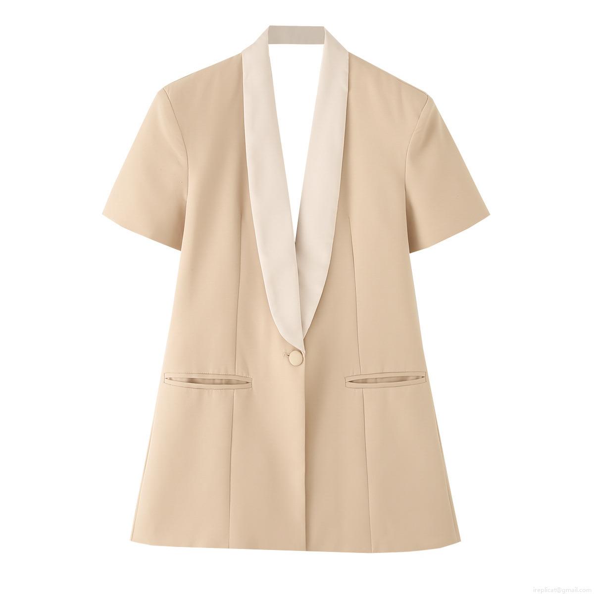• Women Backless Short Sleeve Blazer Chic Contrast Shawl Collar Cut Out V-Back Single Breasted Polyester Woven Suit Jacket For Office Commute Party Streetwear