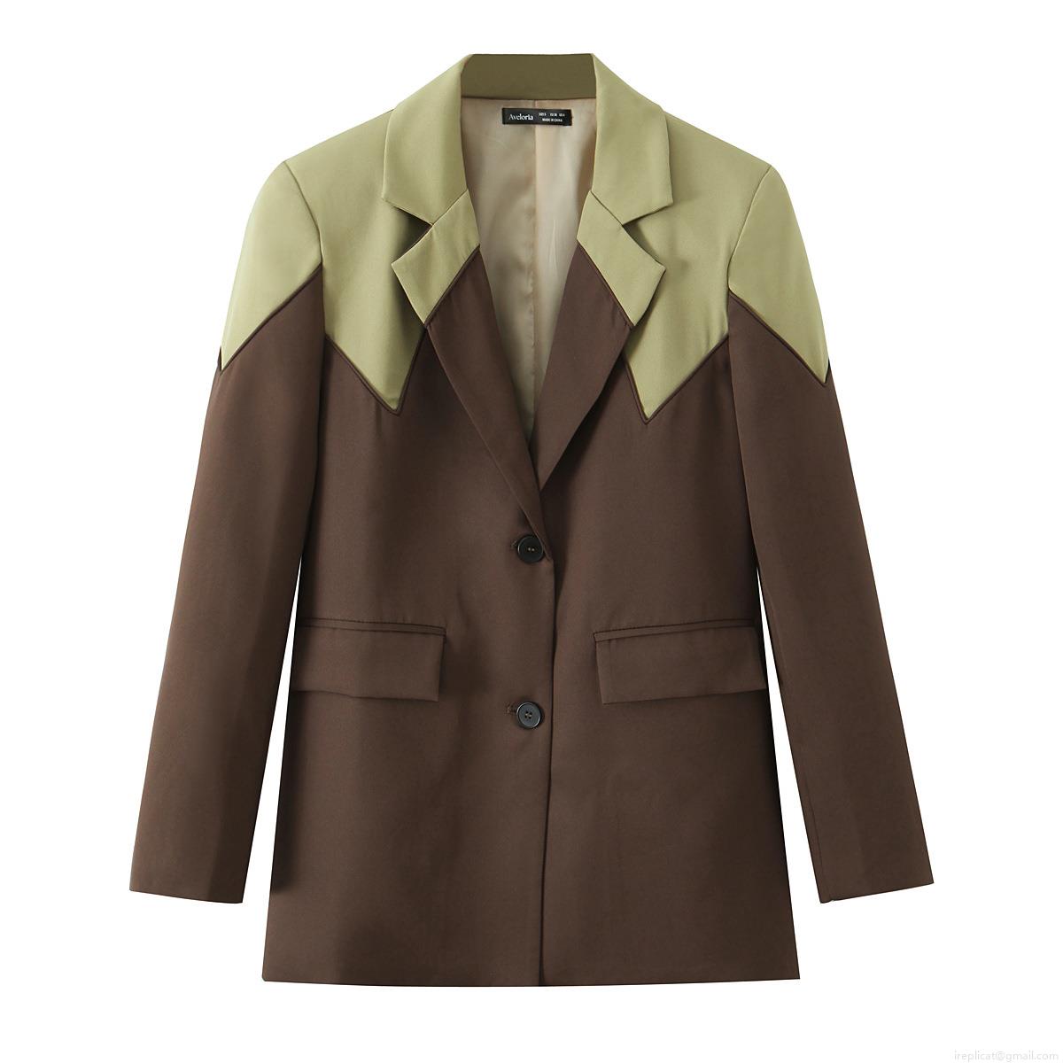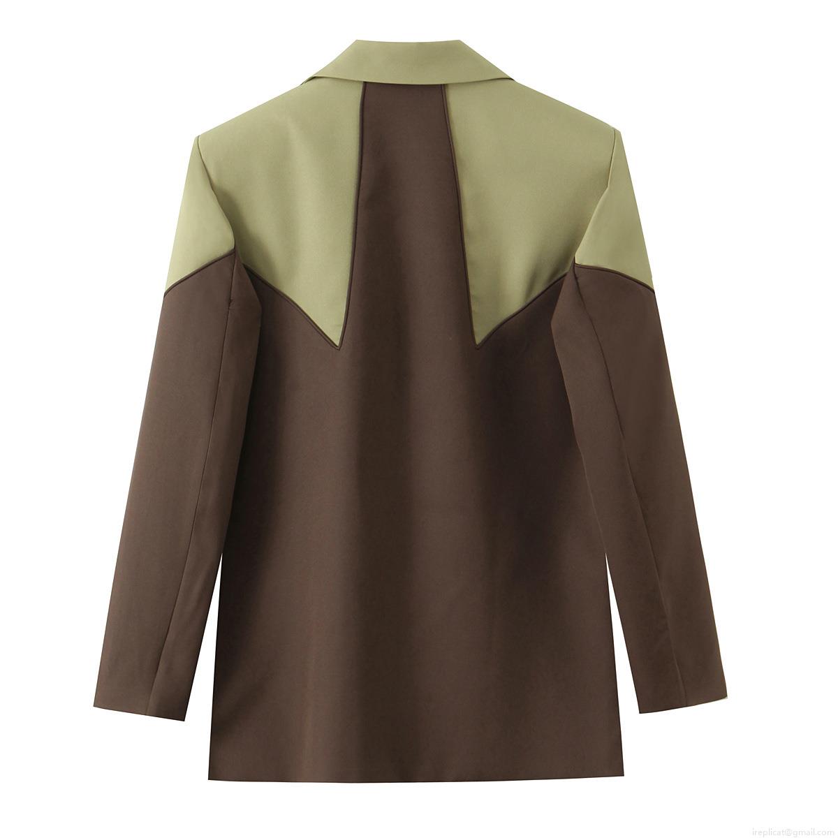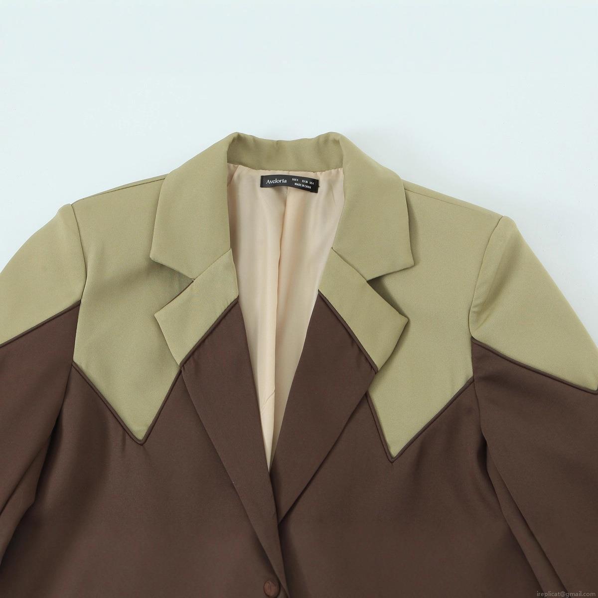Splice, Color Blocking, Geometric Splicing, Flap Pocket, Suit Collar