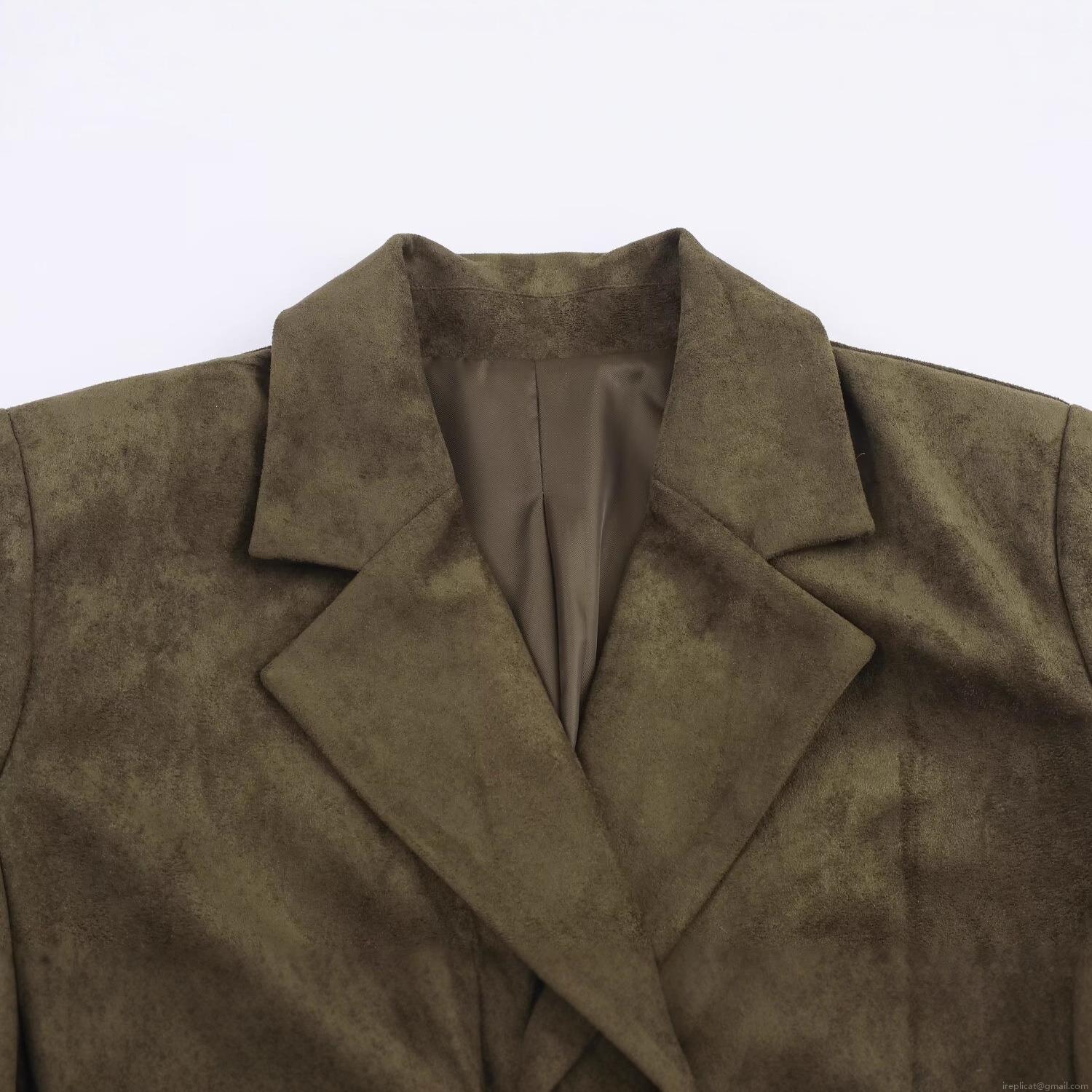 • Women Double Breasted Faux Suede Suit Jacket Notched Lapel Long Sleeve Casual Blazer Outerwear For Autumn Winter Street Style Solid Color Fashion Coat