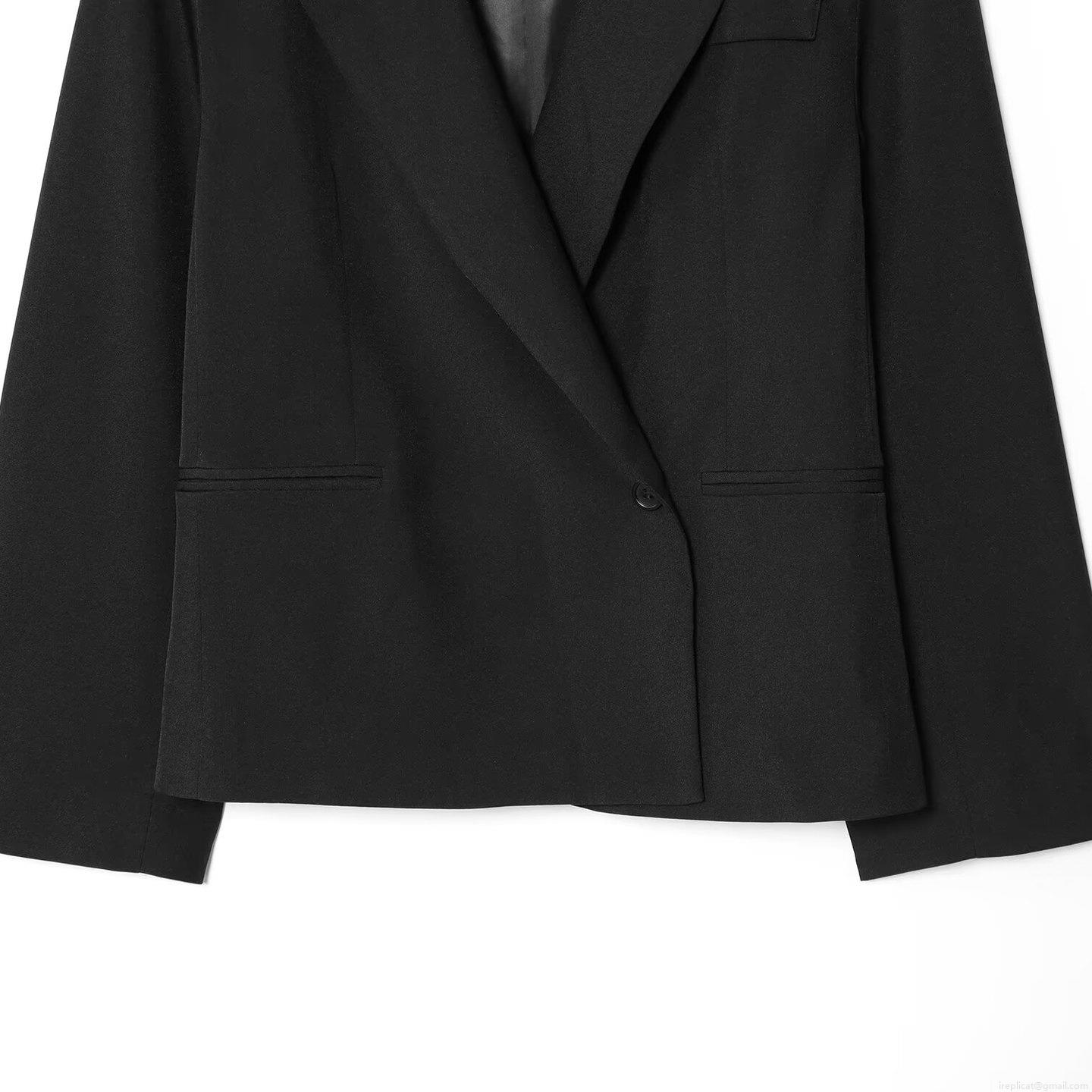 • Women Elegant Black Blazer Notch Lapel Long Sleeve Suit Jacket With Pockets Single Button Office Lady Commuter Casual Outerwear Fall Fashion