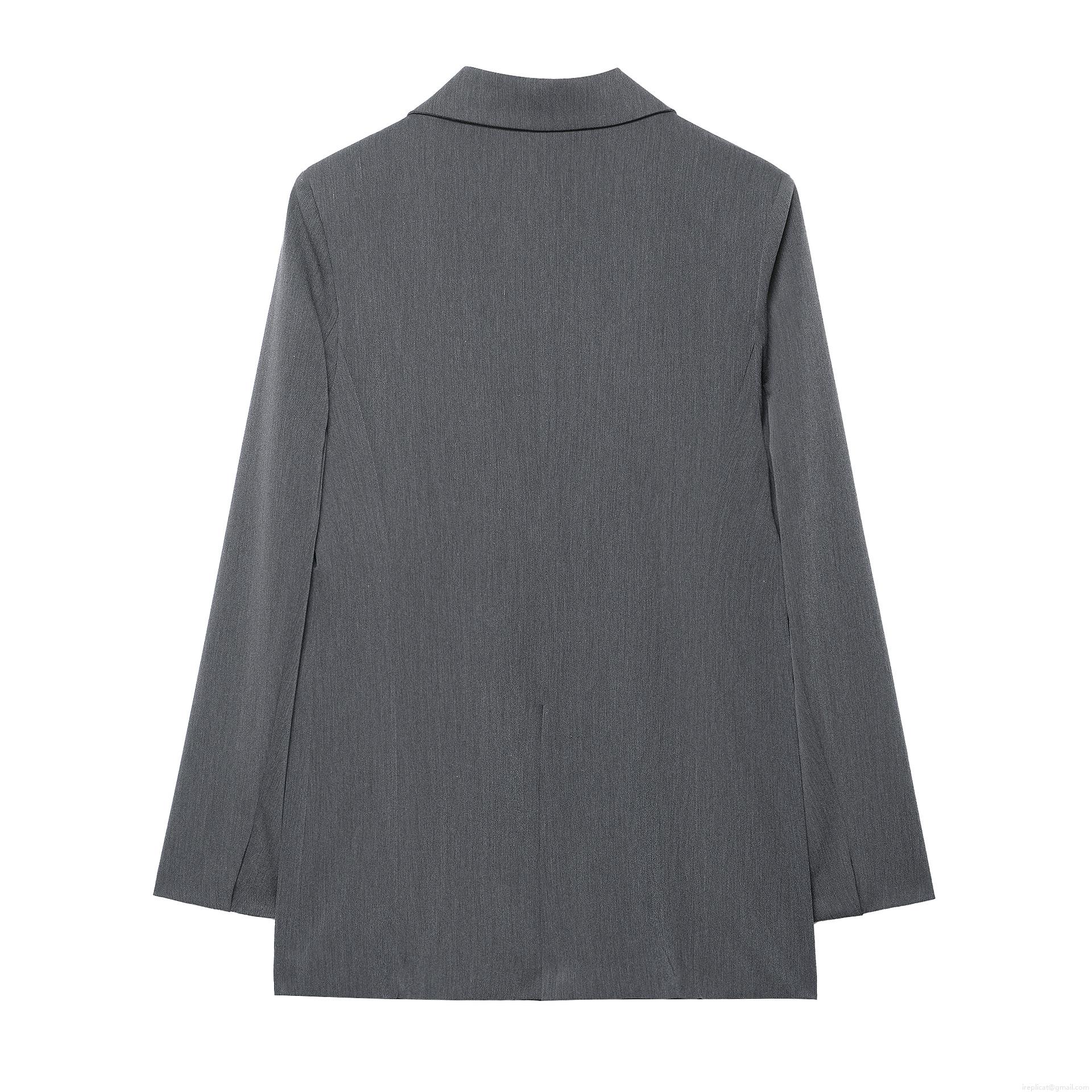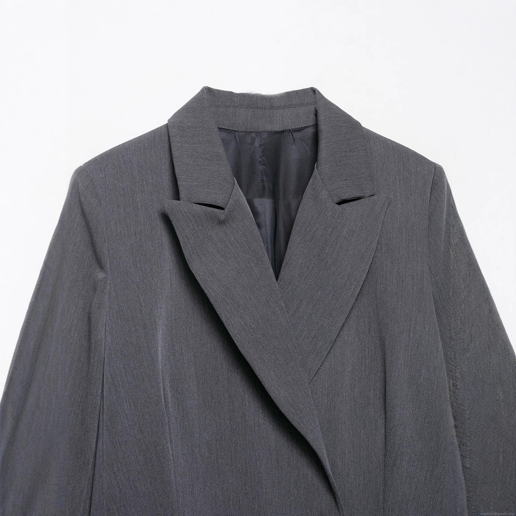 • Women Elegant Double Breasted Blazer Notch Lapel Solid Color Long Sleeve Suit Jacket Office Lady Commute Outerwear With Flap Pockets Polyester