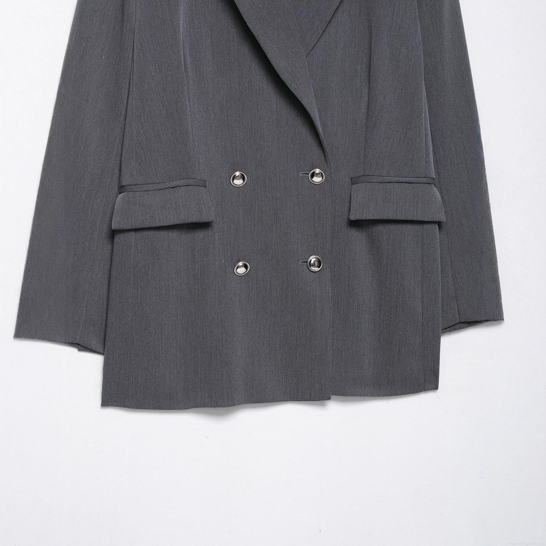 Solid Color, Double-breasted, Flap Pocket, Notch Collar