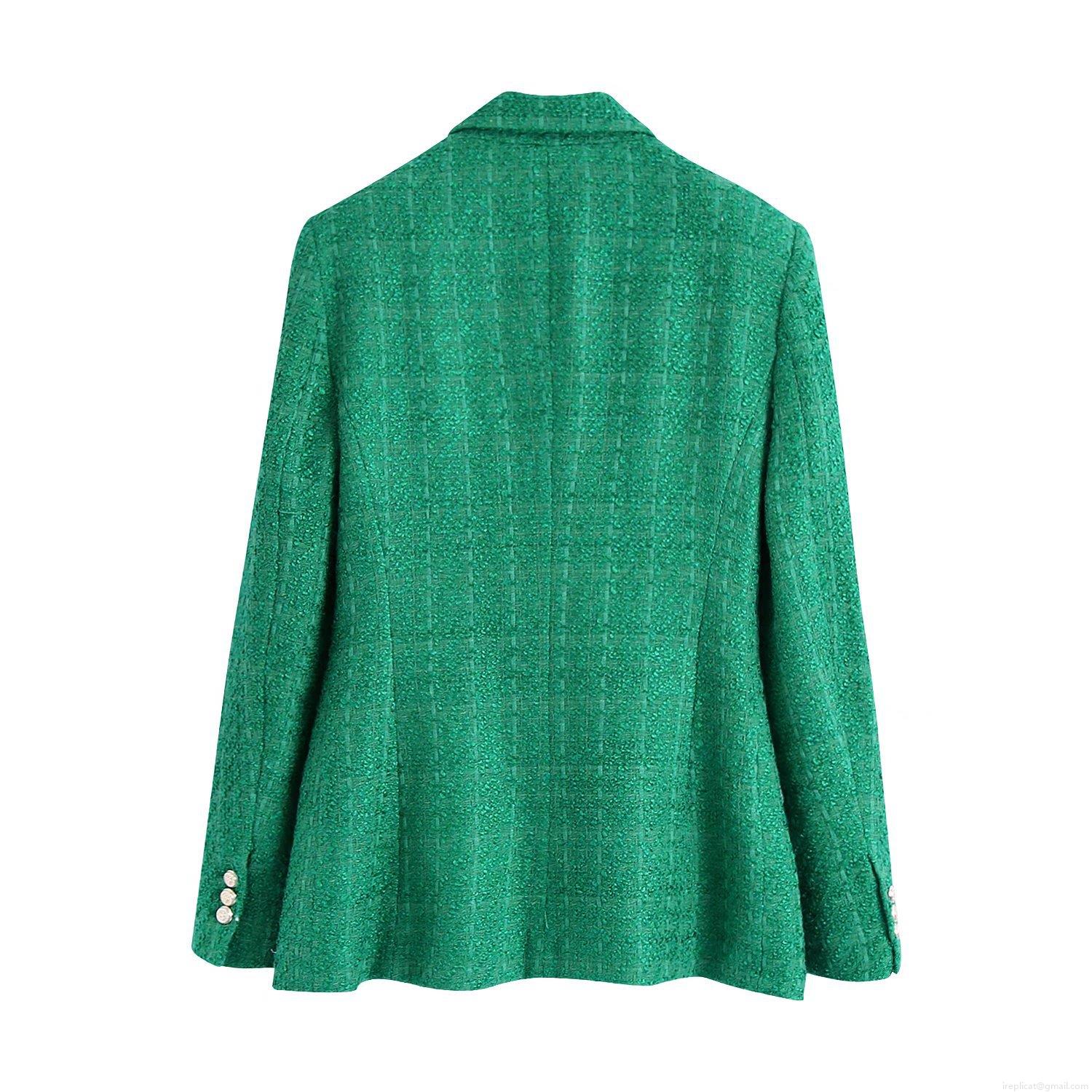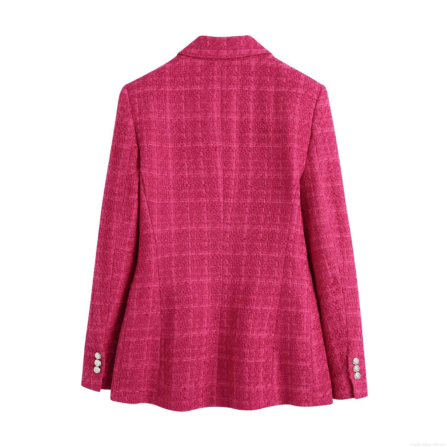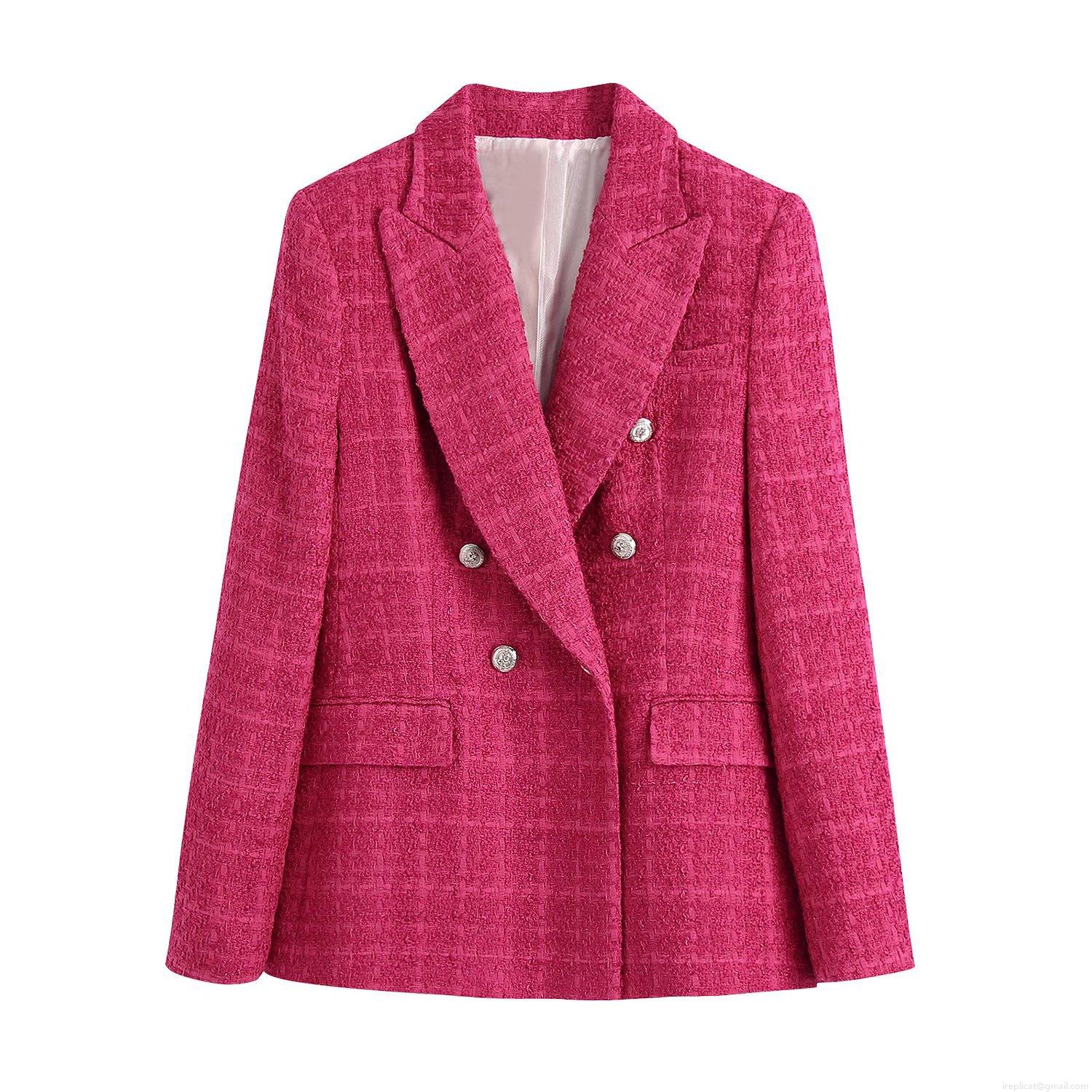 • Women Elegant Tweed Texture Blazer Double Breasted Silver Lion Button Long Sleeve Jacket Streetwear Y2K Casual Outerwear Formal Business Coat