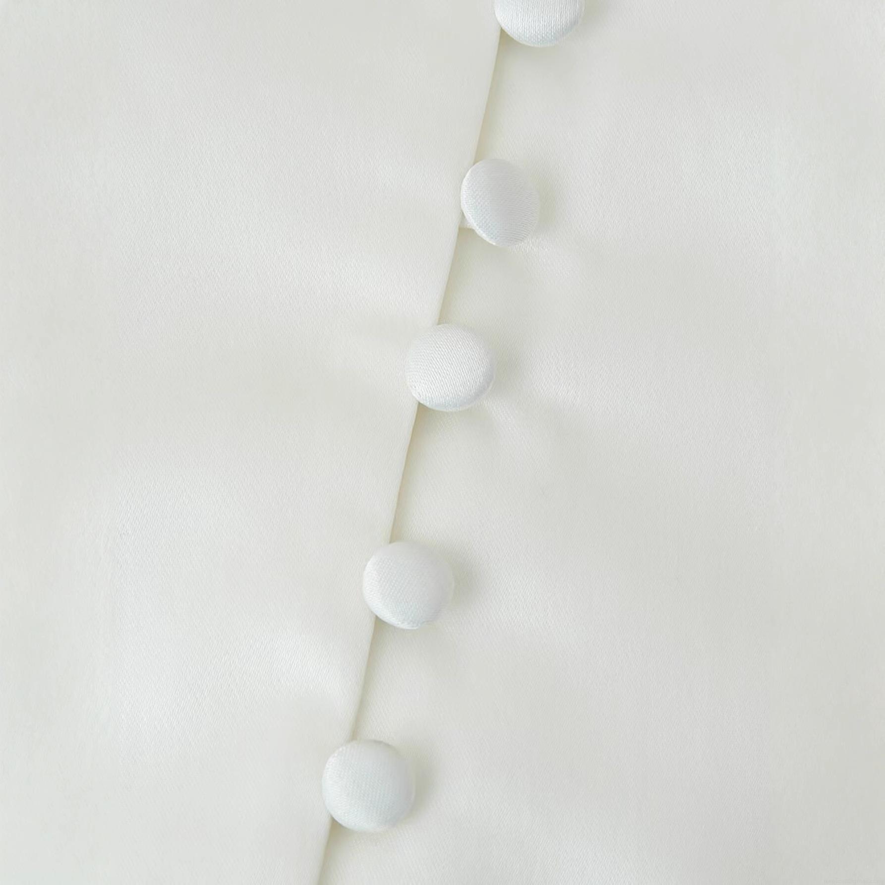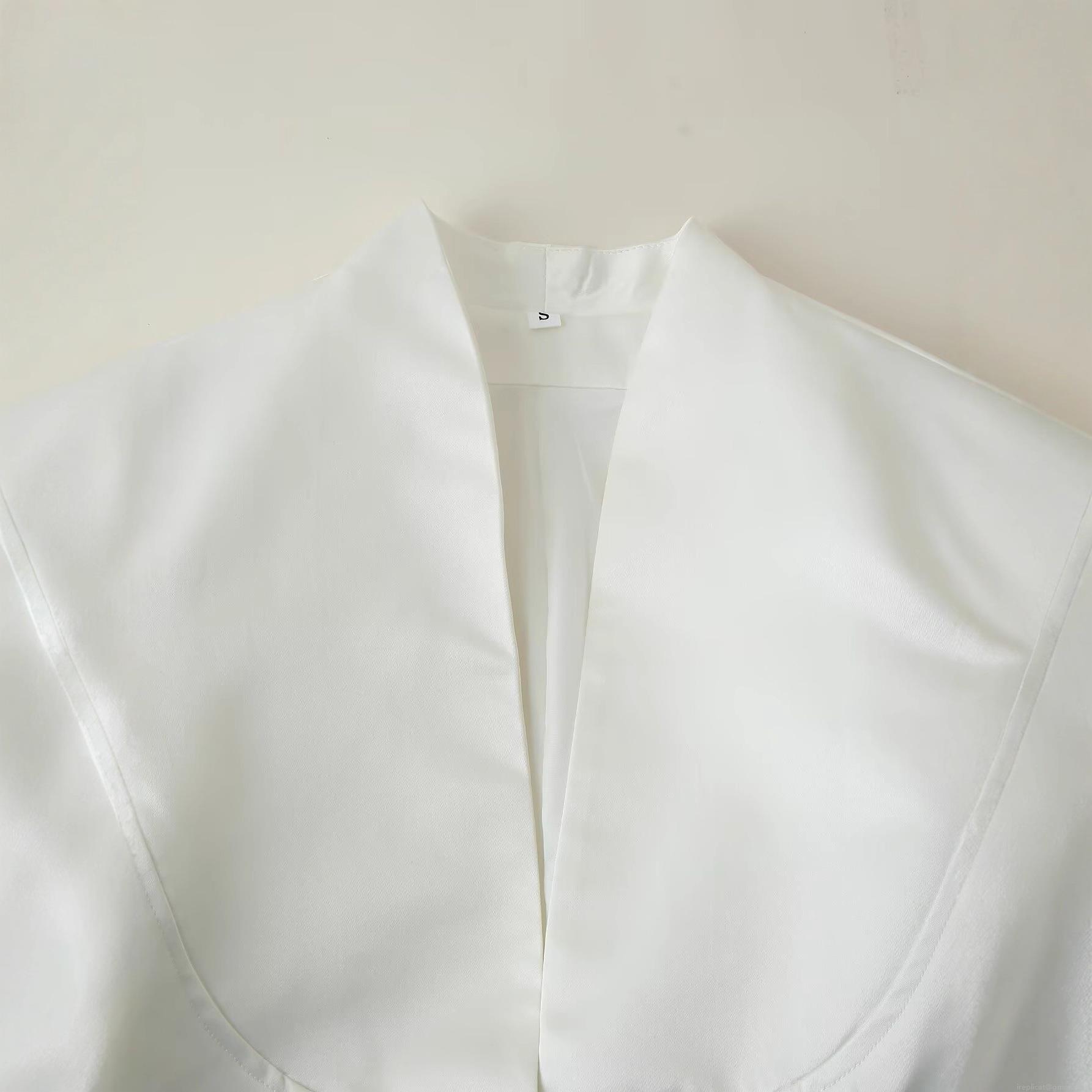 • Women Elegant White Satin Blazer Jacket Deep V-Neck Single Breasted Covered Buttons Lantern Sleeve Solid Color Short Outerwear Fashion Tops For Ladies