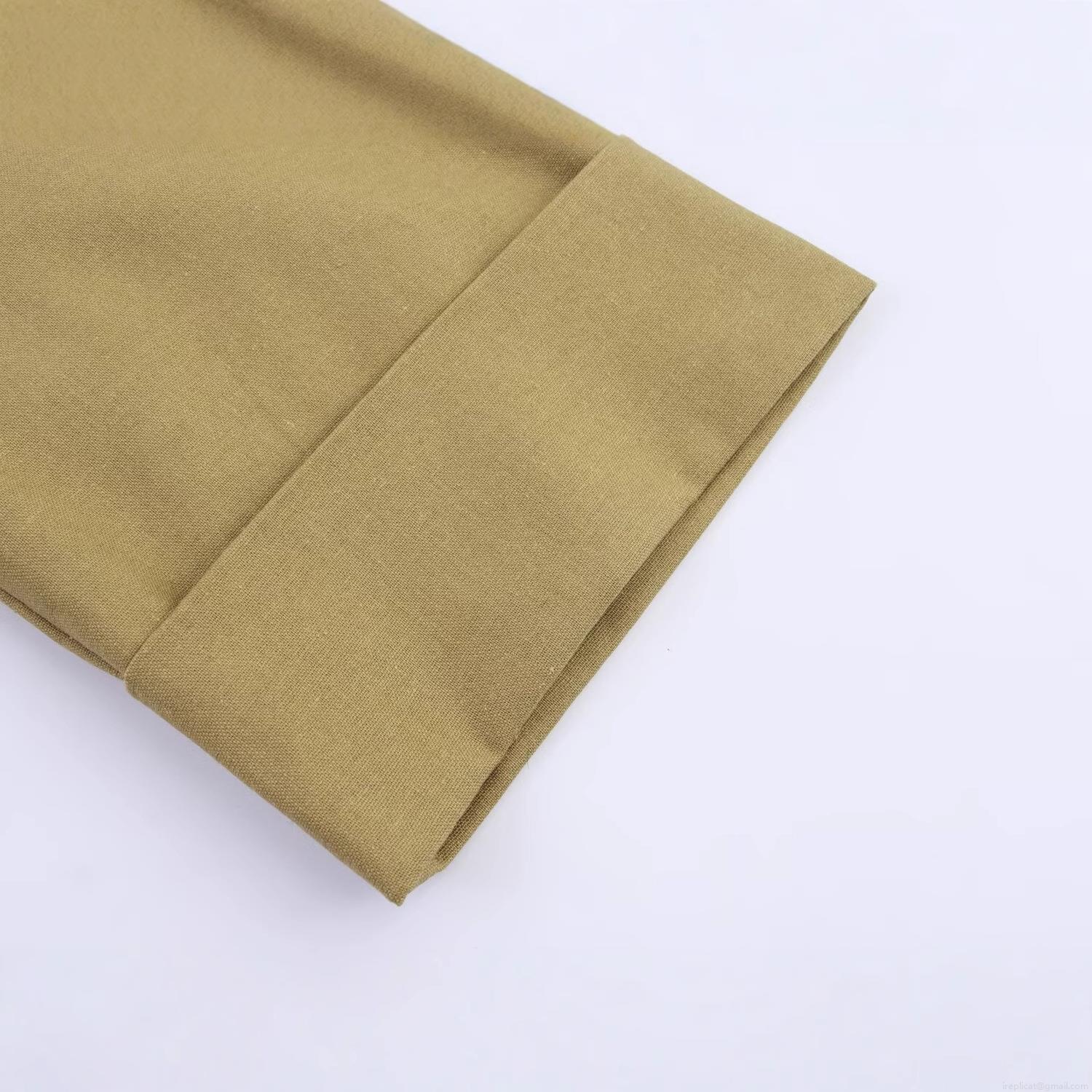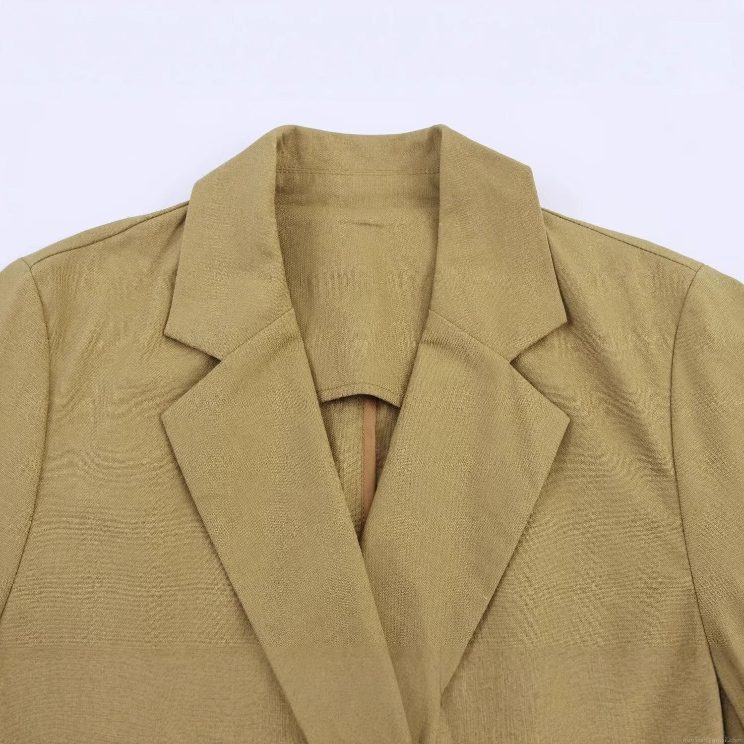 • Women Fashion Short Linen Blend Double Breasted Blazer Khaki Notched Lapel 3/4 Sleeve Casual Office Suit Jacket For Women Work Streetwear