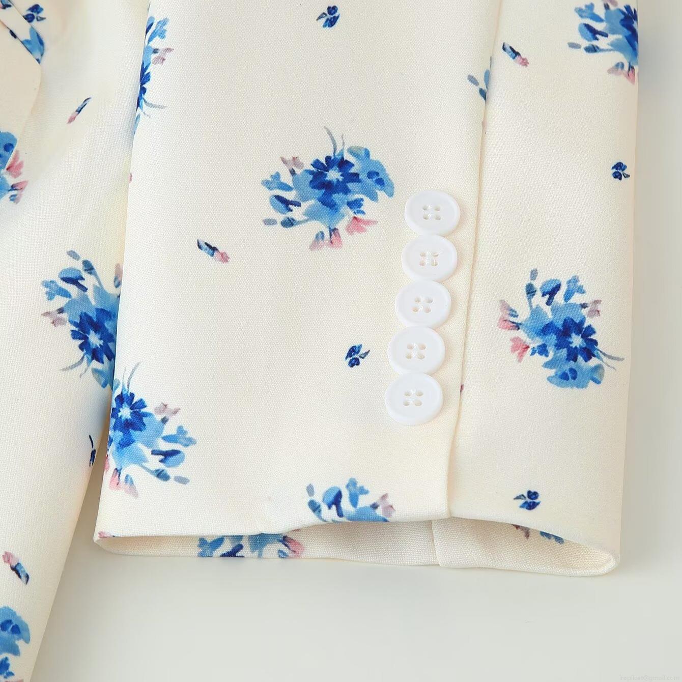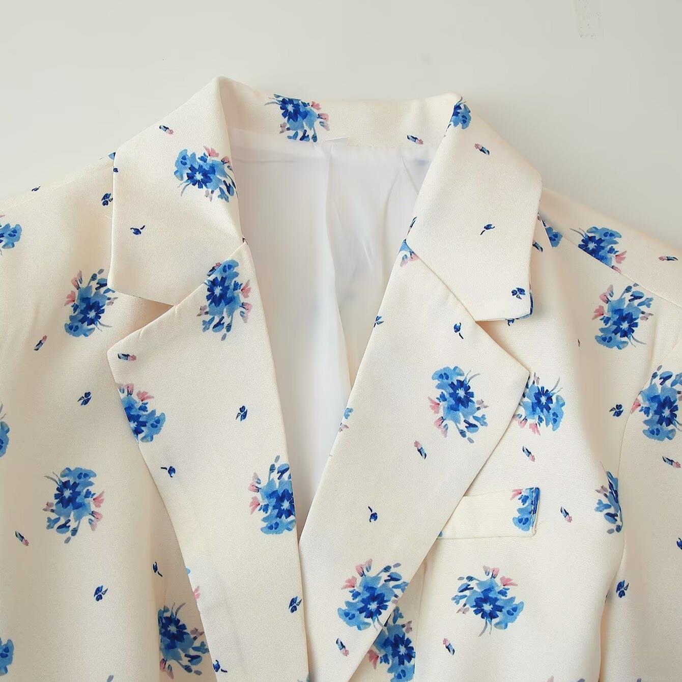 Splice, Floral Pattern, Flowers, Printing, Flap Pocket, Suit Collar, Waist Tie