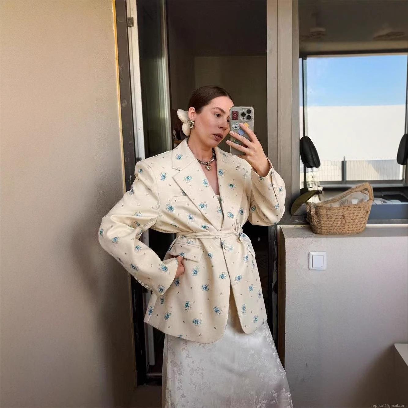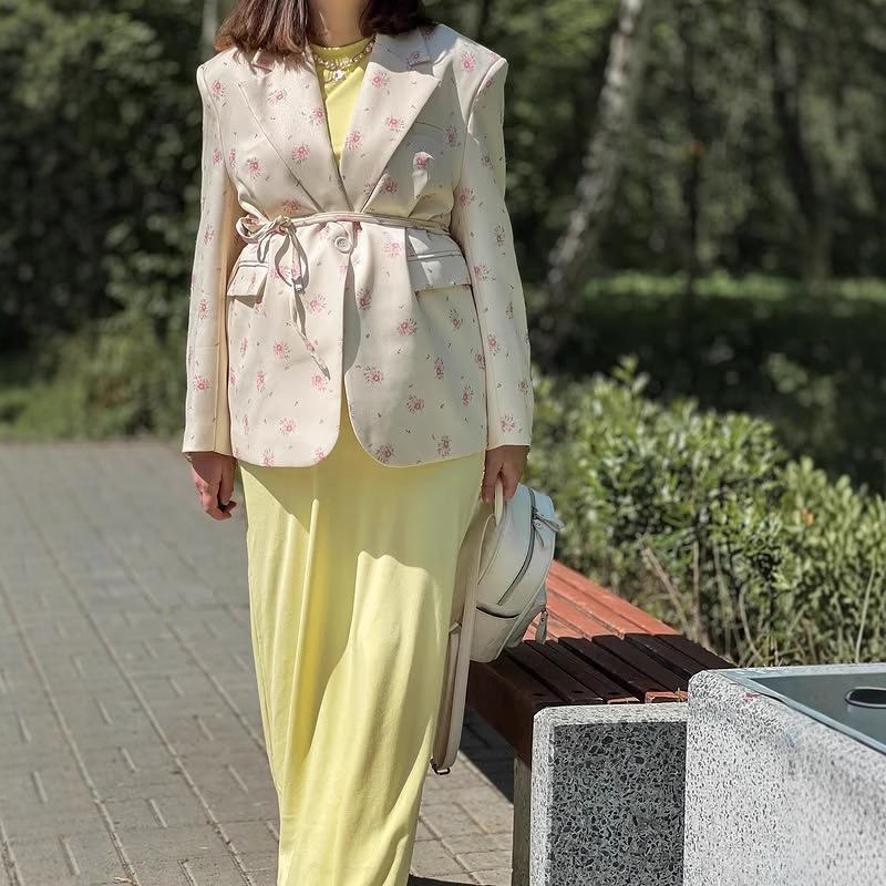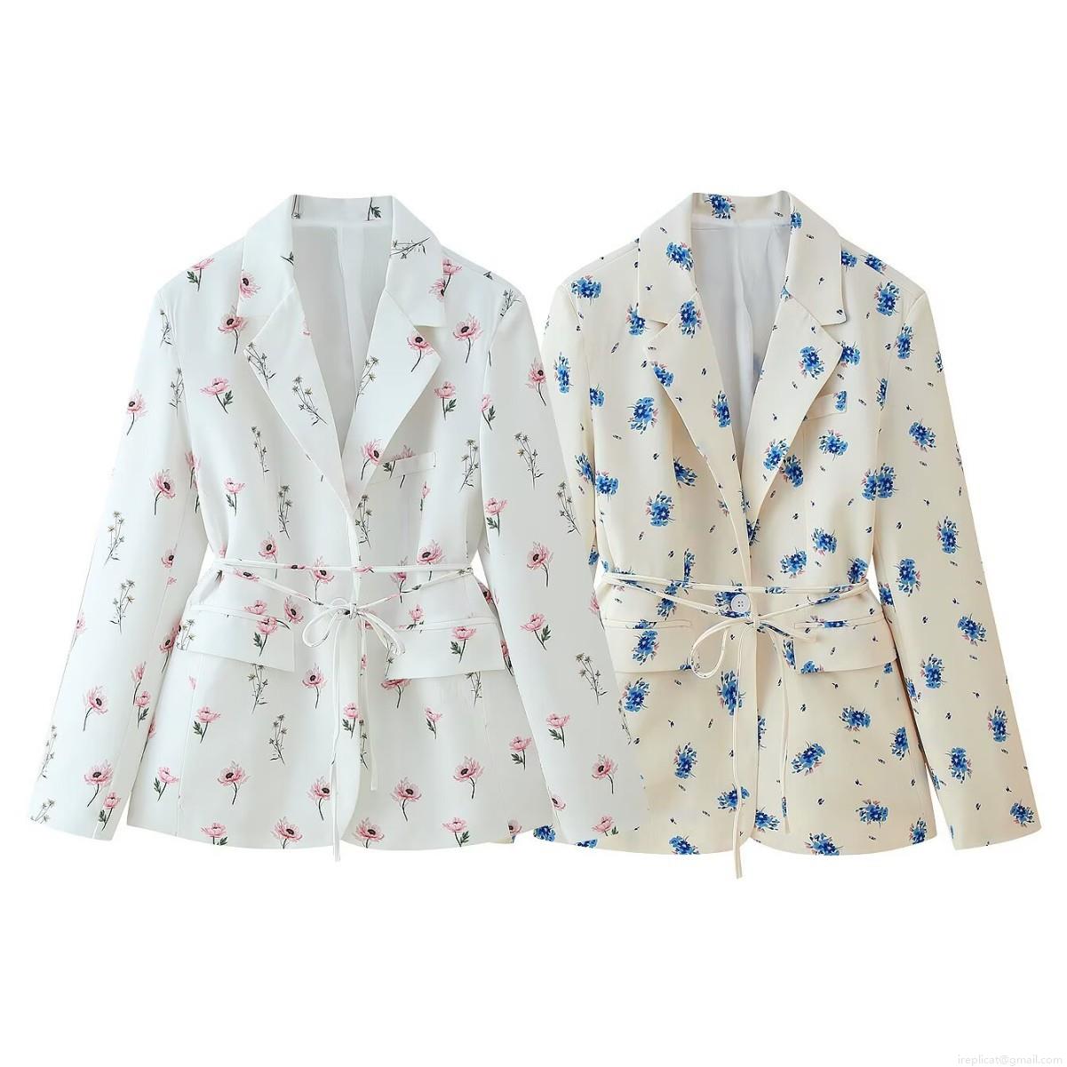 • Women Floral Print Blazer Notched Lapel Long Sleeve Casual Loose Suit Jacket With Self-Tie Belt Elegant Office Lady Streetwear Outerwear For Spring Summer