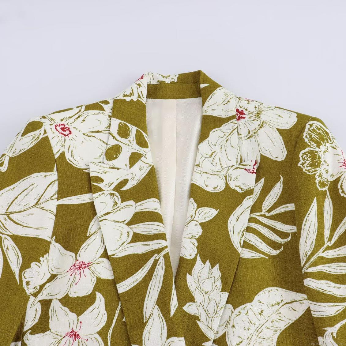 • Women Floral Print Linen Blend Blazer Elegant Loose Fit Long Sleeve Suit Jacket Tropical Flower Lapel Single Breasted Outerwear For Autumn Office Commute Vacation Ladies Casual Coat