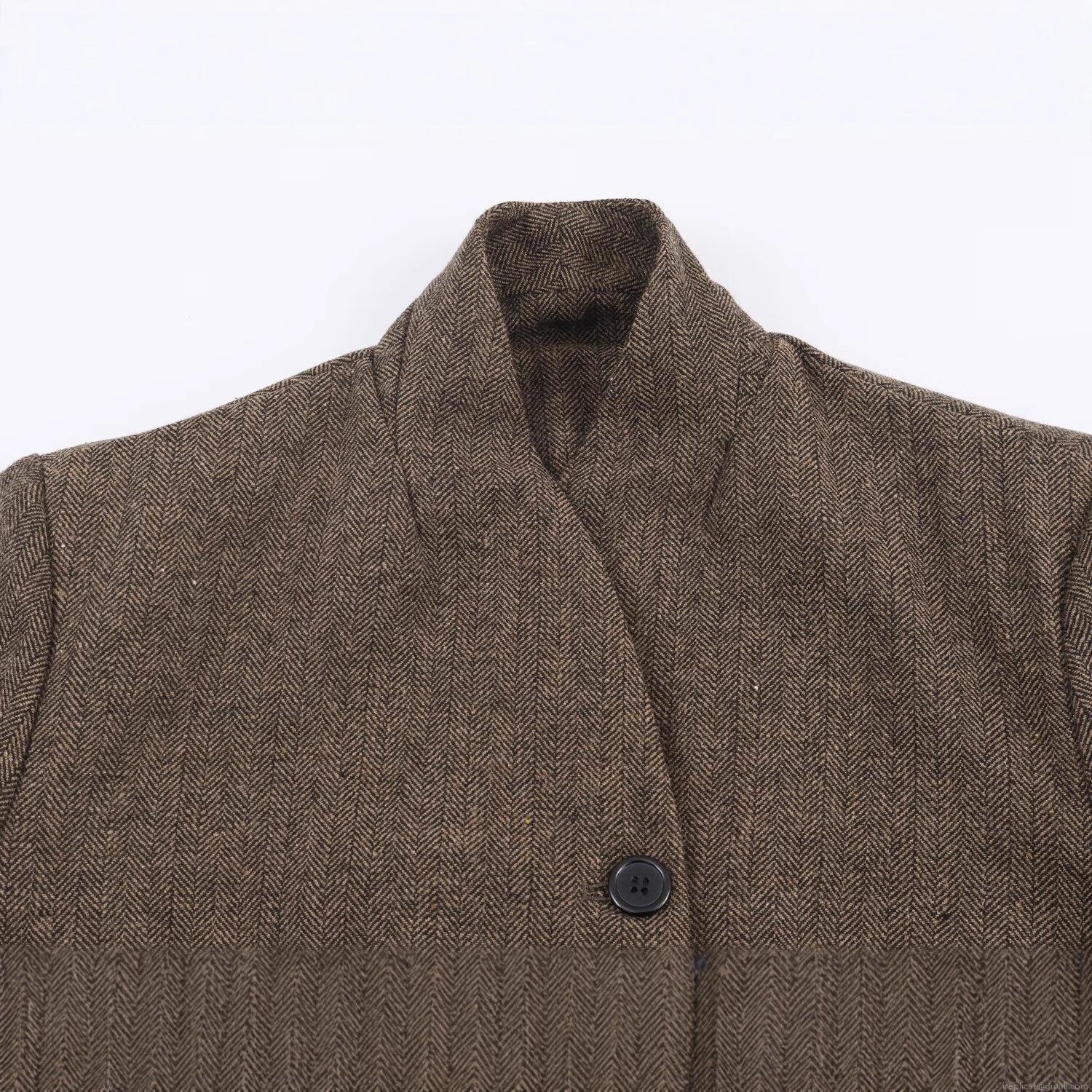 • Women Herringbone Woolen Blazer Jacket Vintage Stand Collar Single Button Tweed Suit Coat Autumn Winter Long Sleeve Streetwear Outerwear For Ladies