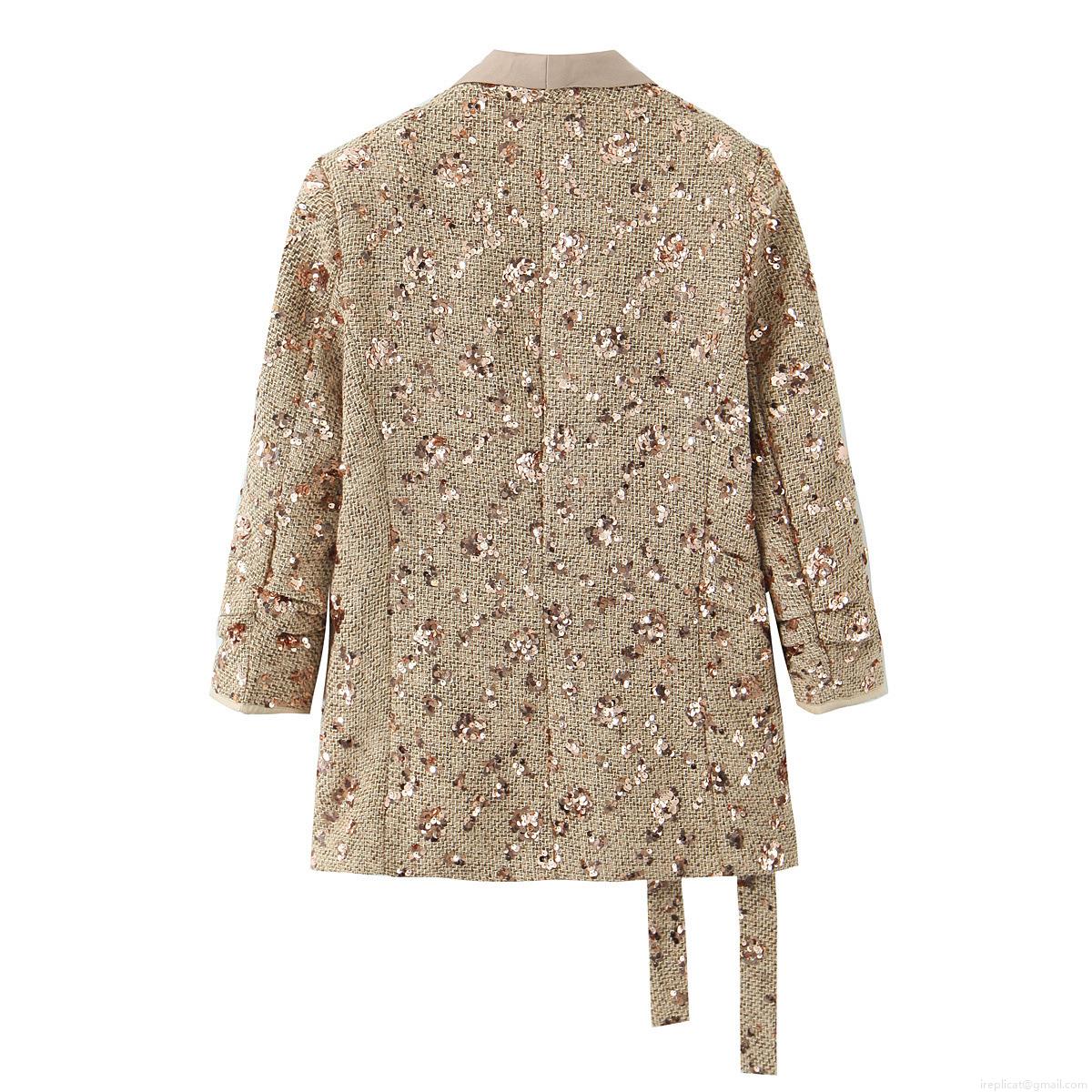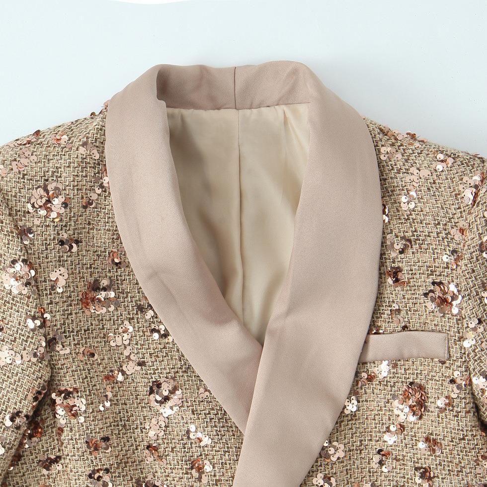 • Women Sequin Tweed Polyester Blazer Jacket Elegant Shawl Collar Lace-Up Suit Coat Vintage Luxury Champagne Gold Outerwear For Office Party Work Formal Fashion Long Sleeve Blazer