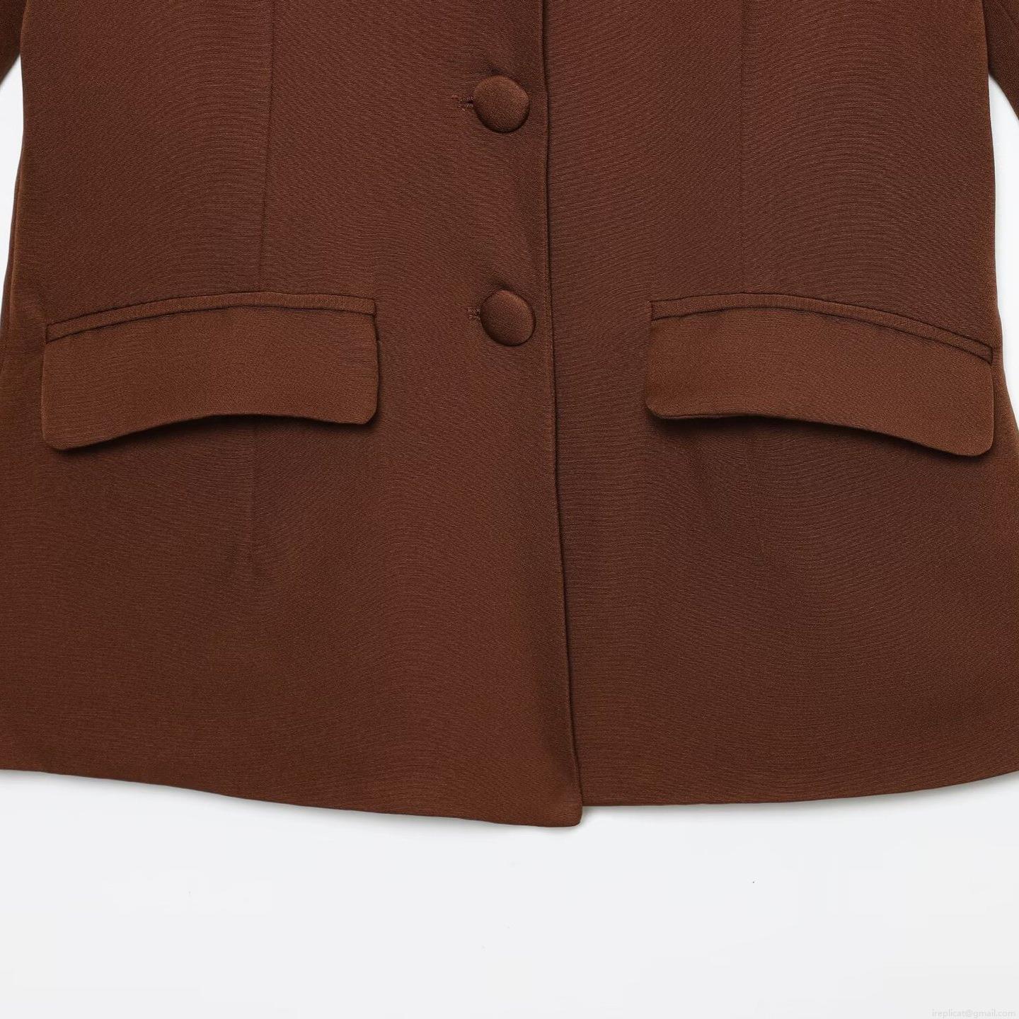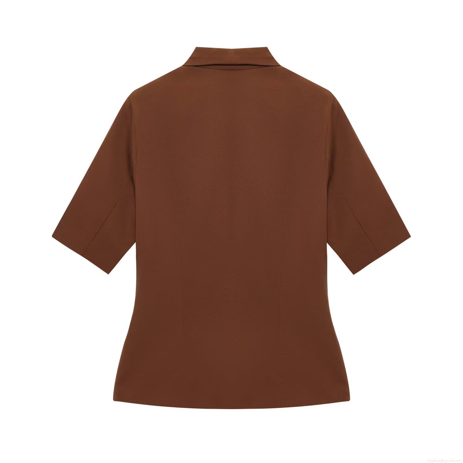 • Women Short Sleeve Blazer Jacket Slim Fit Shawl Collar Polyester Spandex Single Breasted Suit Top For Office Lady Elegant Commute Dark Brown