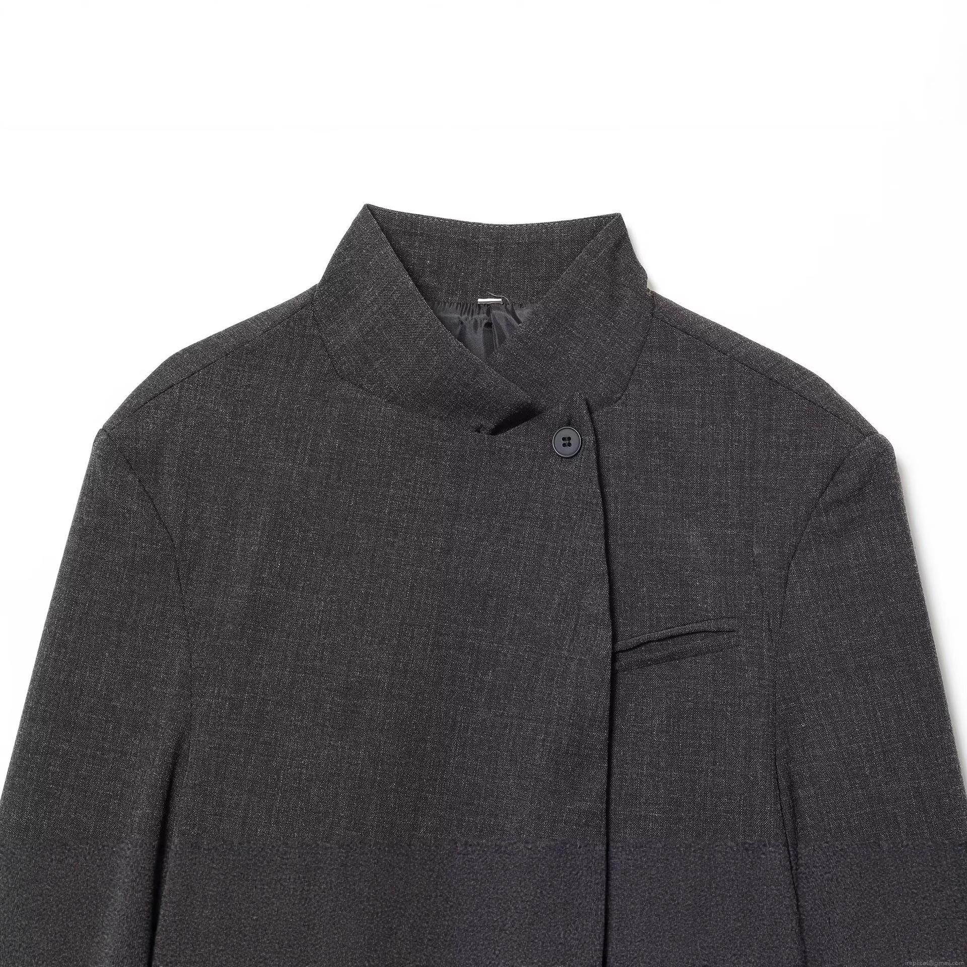 • Women Stand Collar Blazer Jacket Elegant Single Breasted Polyester Wool-Like Texture Solid Color Autumn Outerwear For Ladies Office Daily Wear