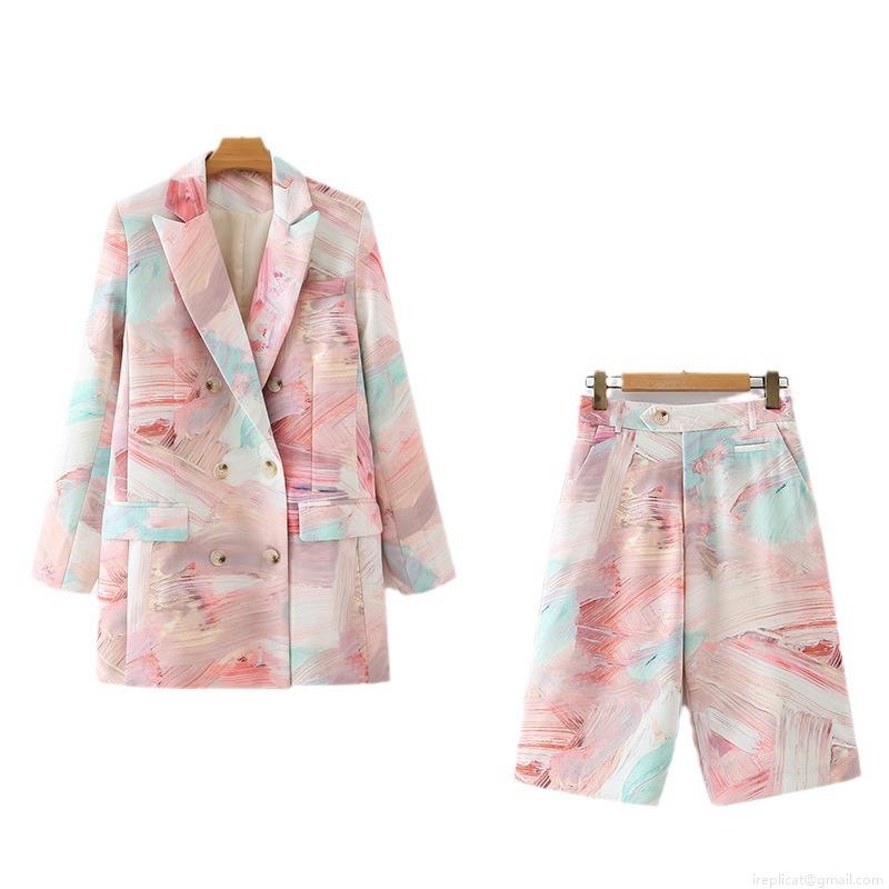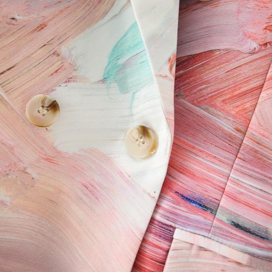 Printing, Double-breasted, Ink Splash Pattern, Lapel, Abstract Oil Painting, Marble-patterned Buckle