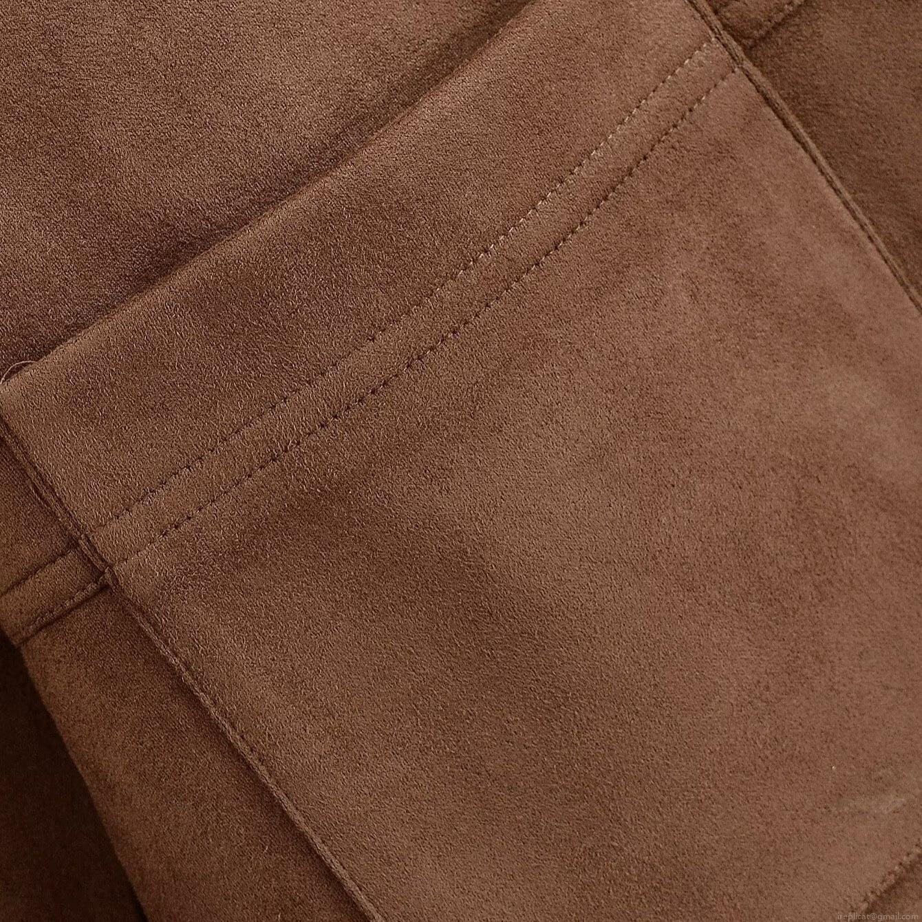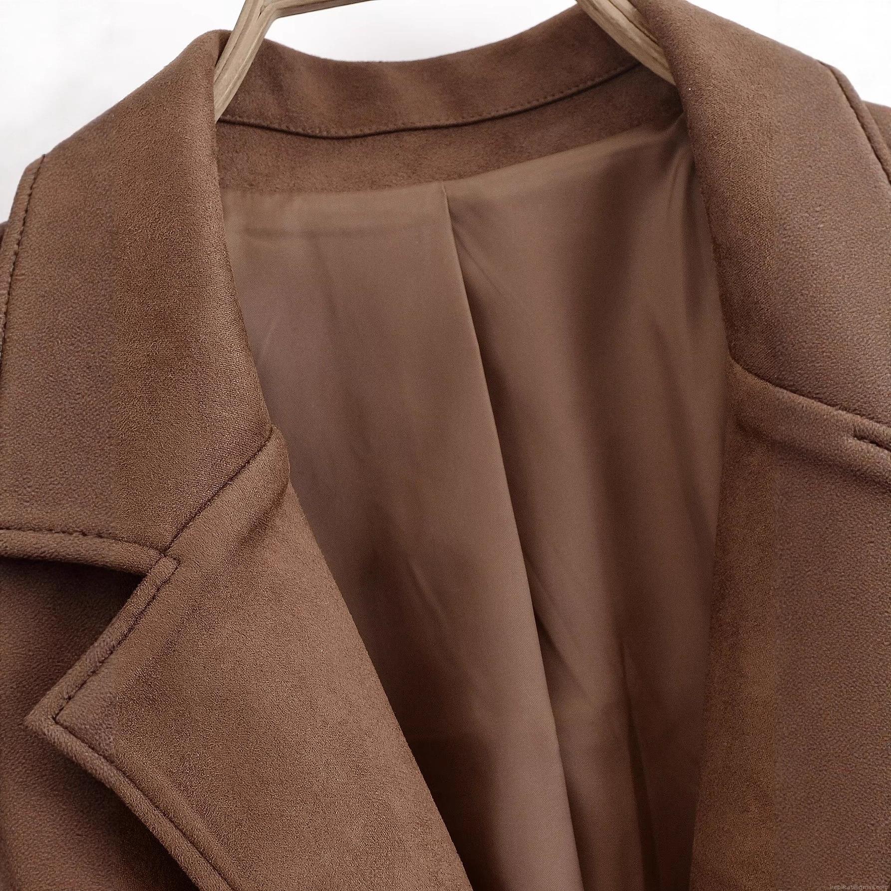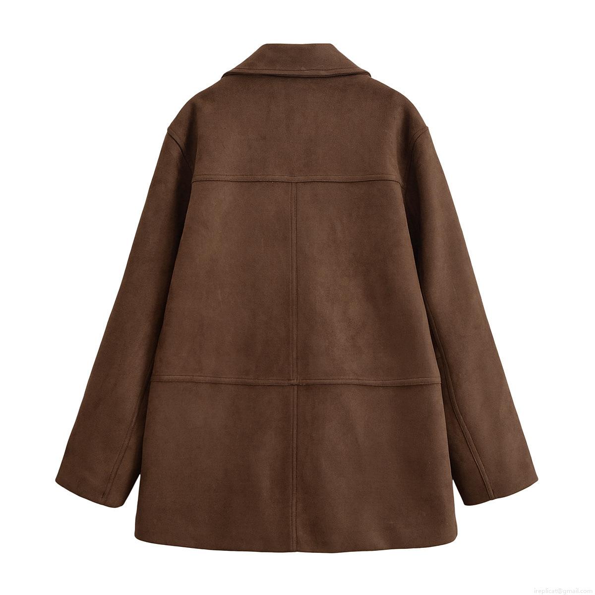 Women's Autumn Suede Suit Jacket Long Sleeve Lapel Solid Color Blazer With Double Buttons Large Patch Pockets European Street Style Outwear Coat For Women