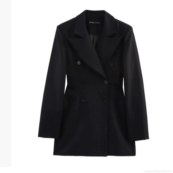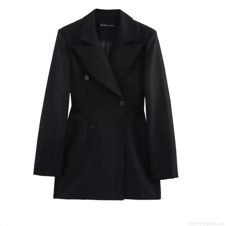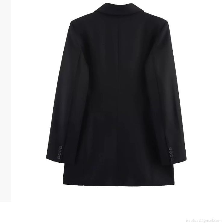 Solid Color, Double-breasted, Silk Satin Texture, Shoulder Pad Design