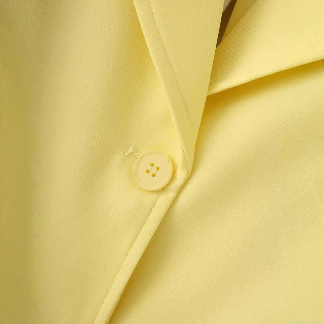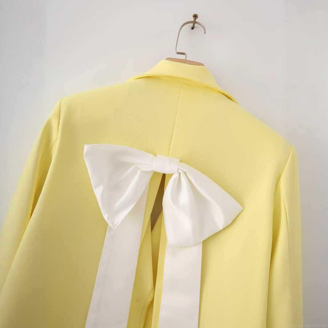 • Women's Bright Yellow Blazer Jacket With Large Back White Satin Bow Notch Lapel Loose Fit Two Button Suit For Office Elegant Commuter Outerwear